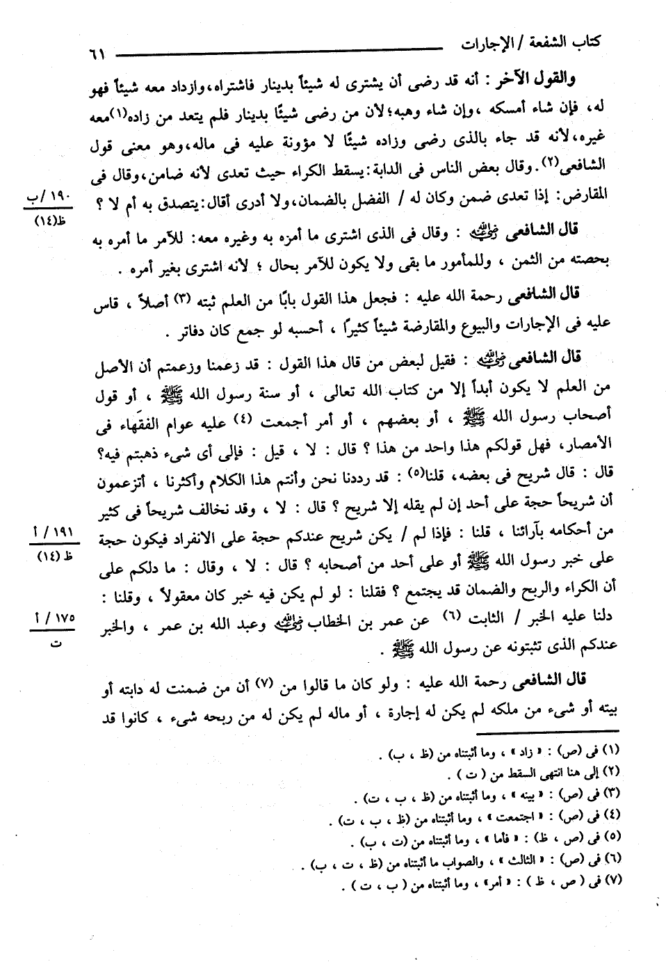 قَالَ الشَّافِعِيُّ: فَقِيلَ لِبَعْضِ مَنْ قَالَ هَذَا الْقَوْلَ: قَدْ زَعَمْنَا وَزَعَمْتُمْ أَنَّ الْأَصْلَ مِنْ الْعِلْمِ لاَ يَكُونُ أَبَدًا إلَّا مِنْ كِتَابِ اللَّهِ تَعَالَى , أَوْ سُنَّةِ رَسُولِ اللَّهِ - صلى الله عليه وسلم - أَوْ قَوْلِ أَصْحَابِ رَسُولِ اللَّهِ - صلى الله عليه وسلم - أَوْ بَعْضِهِمْ , أَوْ أَمْرٍ أَجْمَعَتْ عَلَيْهِ عَوَامُّ الْفُقَهَاءِ فِي الْأَمْصَارِ فَهَلْ قَوْلُكُمْ هَذَا وَاحِدٌ مِنْ هَذَا؟ قَالَ: لاَ قِيلَ: فَإِلَى أَيِّ شَيْءٍ ذَهَبْتُمْ فِيهِ؟ قَالَ: قَالَ شُرَيْحٌ فِي بَعْضِهِ قُلْنَا قَدْ رَدَدْنَا نَحْنُ وَأَنْتُمْ هَذَا الْكَلاَمَ وَأَكْثَرْنَا أَتَزْعُمُونَ أَنَّ شُرَيْحًا حُجَّةً عَلَى أَحَدٍ إنْ لَمْ يَقُلْهُ إلَّا شُرَيْحٌ؟ قَالَ: لاَ , وَقَدْ نُخَالِفُ شُرَيْحًا فِي كَثِيرٍ مِنْ أَحْكَامِهِ بِآرَائِنَا: قُلْنَا , فَإِذَا لَمْ يَكُنْ شُرَيْحٌ عِنْدَكُمْ حُجَّةً عَلَى الِانْفِرَادِ فَيَكُونُ حُجَّةً عَلَى خَبَرِ رَسُولِ اللَّهِ - صلى الله عليه وسلم - أَوْ عَلَى أَحَدٍ مِنْ أَصْحَابِهِ؟ قَالَ: لاَ وَقَالَ: مَا دَلَّكُمْ عَلَى أَنَّ الْكِرَاءَ وَالرِّبْحَ وَالضَّمَانَ قَدْ يَجْتَمِعُ؟ فَقُلْنَا لَوْ لَمْ يَكُنْ فِيهِ خَبَرٌ كَانَ مَعْقُولاً وَقُلْنَا دَلَّنَا عَلَيْهِ الْخَبَرُ الثَّابِتُ عَنْ عُمَرَ بْنِ الْخَطَّابِ رضي الله عنه وَعَبْدِ اللَّهِ بْنِ عُمَرَ وَالْخَبَرُ عِنْدَكُمْ الَّذِي تُثْبِتُونَهُ عَنْ رَسُولِ اللَّهِ - صلى الله عليه وسلم -.