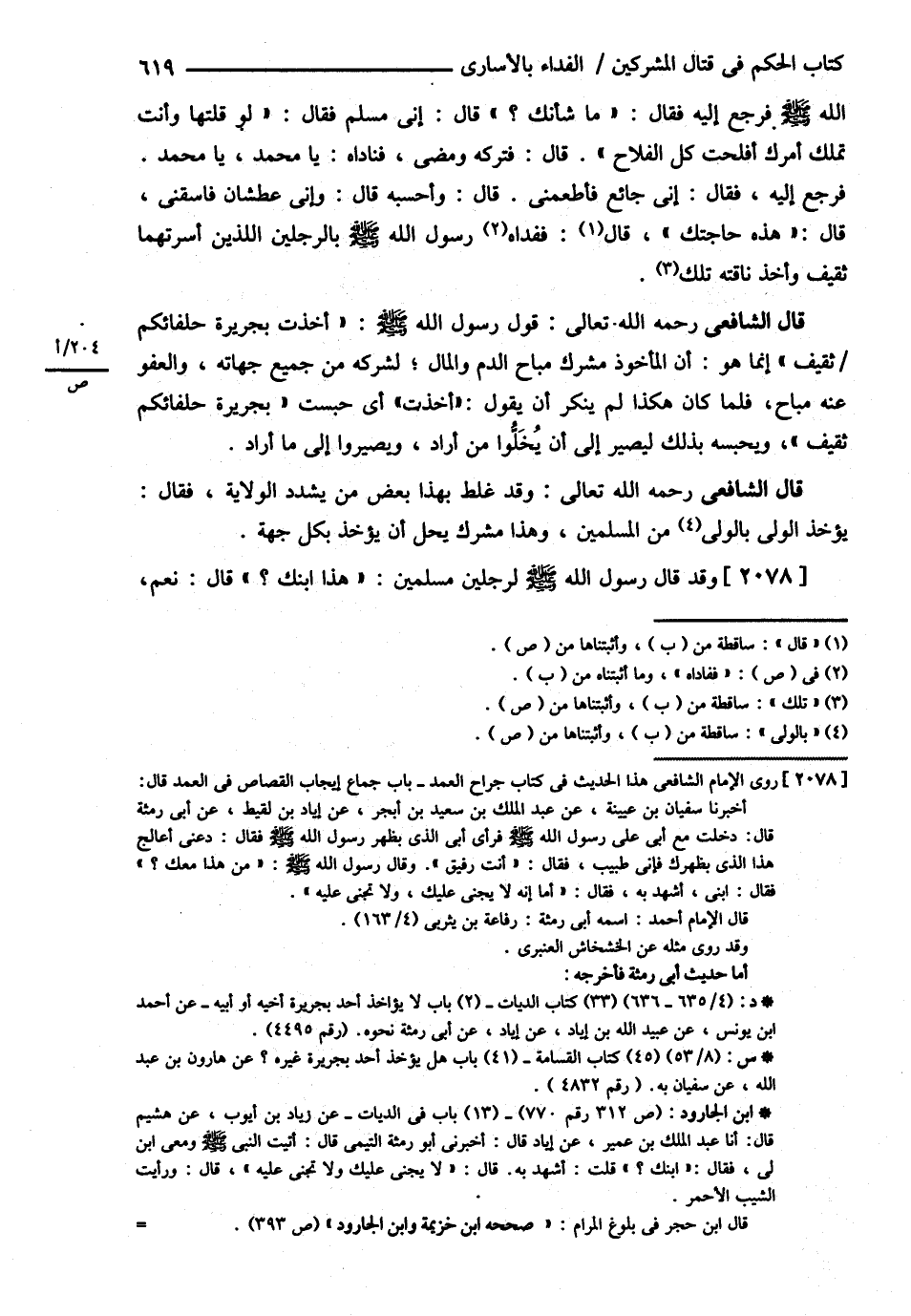 قَالَ الشَّافِعِيُّ : رحمه الله تعالى : وَقَدْ غَلِطَ بِهَذَا بَعْضُ مَنْ يُشَدِّدُ الْوِلاَيَةَ فَقَالَ : يُؤْخَذُ الْوَلِيُّ مِنْ الْمُسْلِمِينَ وَهَذَا مُشْرِكٌ يَحِلُّ أَنْ يُؤْخَذَ بِكُلِّ جِهَةٍ وَقَدْ { قَالَ رَسُولُ اللَّهِ - صلى الله عليه وسلم - لِرَجُلَيْنِ مُسْلِمَيْنِ هَذَا ابْنُك ؟ قَالَ نَعَمْ@