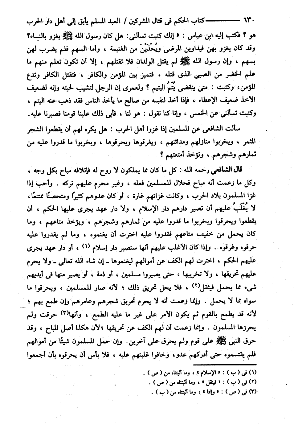 سَأَلْت الشَّافِعِيَّ عَنْ الْمُسْلِمِينَ إذَا غَزَوْا أَهْلَ الْحَرْبِ هَلْ يُكْرَهُ لَهُمْ أَنْ يَقْطَعُوا الشَّجَرَ الْمُثْمِرَ وَيُخَرِّبُوا مَنَازِلَهُمْ وَمَدَائِنَهُمْ وَيُغْرِقُوهَا وَيُحَرِّقُوهَا وَيُخَرِّبُوا مَا قَدَرُوا عَلَيْهِ مِنْ ثِمَارِهِمْ وَشَجَرِهِمْ وَتُؤْخَذُ أَمْتِعَتُهُمْ ؟