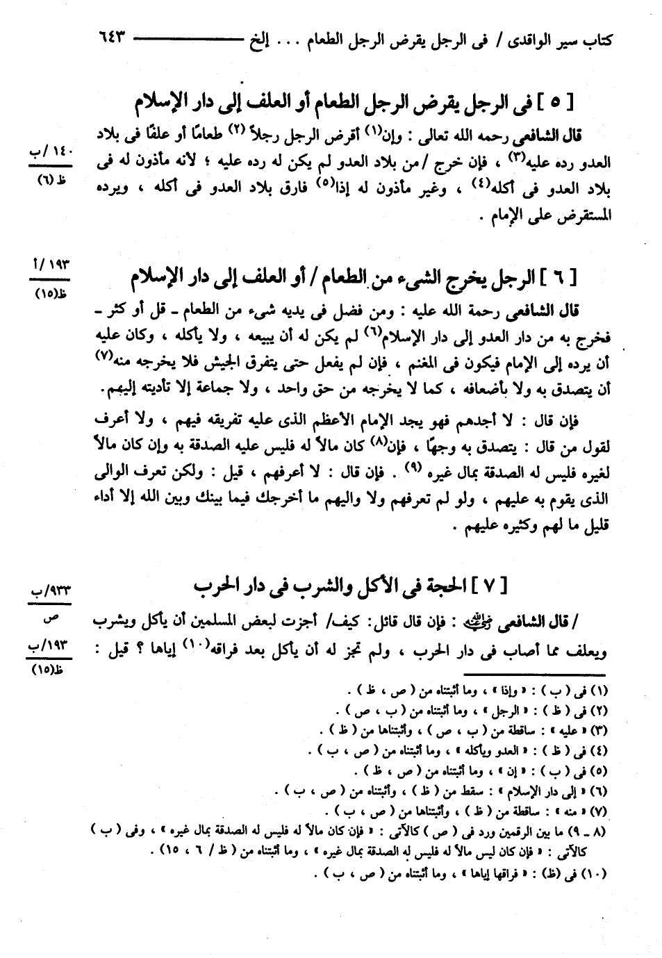 قَالَ الشَّافِعِيُّ : رحمه الله تعالى فَإِنْ قَالَ قَائِلٌ : كَيْفَ أَجَزْت لِبَعْضِ الْمُسْلِمِينَ أَنْ يَأْكُلَ وَيَشْرَبَ وَيَعْلِفَ مِمَّا أَصَابَ فِي دَارِ الْحَرْبِ وَلَمْ تَجُزْ لَهُ أَنْ يَأْكُلَ بَعْدَ فِرَاقِهِ إيَّاهَا ؟ قِيلَ :@