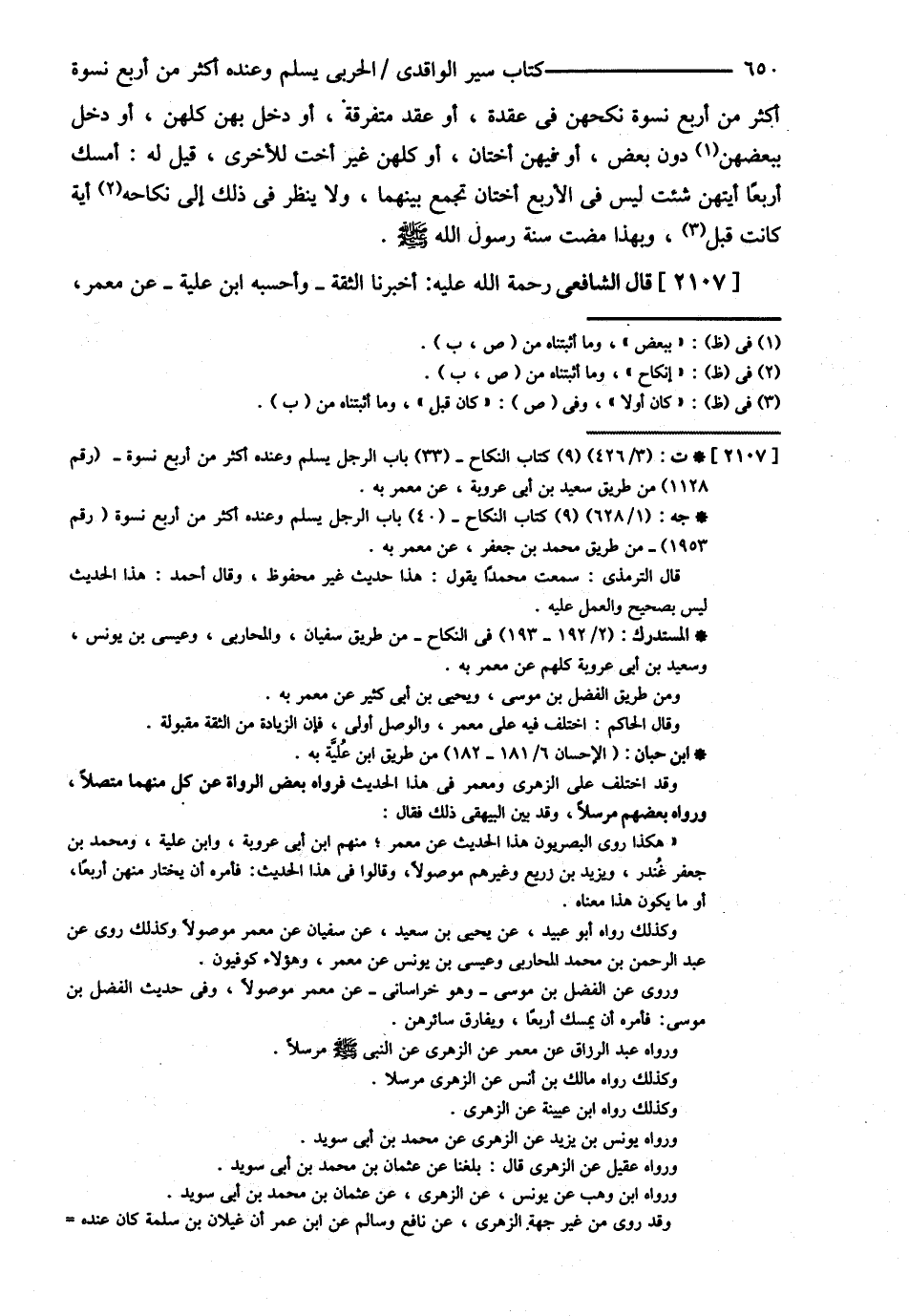 قَالَ الشَّافِعِيُّ : رحمه الله تعالى : أَخْبَرَنَا الثِّقَةُ وَأَحْسَبُهُ ابْنَ عُلَيَّةَ عَنْ مَعْمَرٍ @