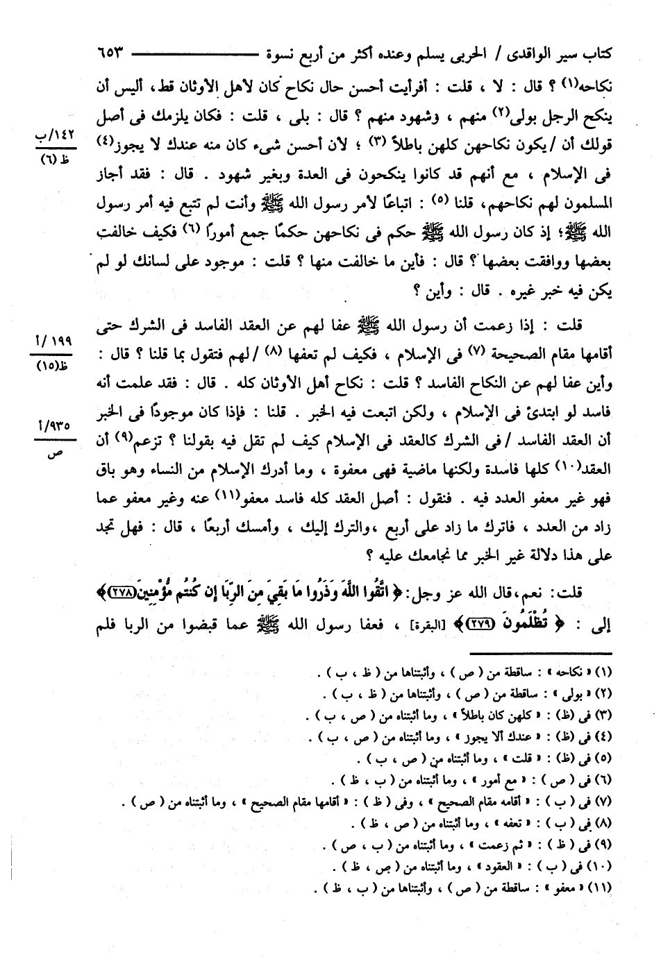نِكَاحُهُ ؟ قَالَ : لاَ قُلْت : أَفَرَأَيْت أَحْسَنَ حَالِ نِكَاحٍ كَانَ لِأَهْلِ الْأَوْثَانِ قَطُّ أَلَيْسَ أَنْ يَنْكِحَ الرَّجُلُ بِوَلِيٍّ مِنْهُمْ وَشُهُودٍ مِنْهُمْ ؟ قَالَ : بَلَى قُلْت : فَكَانَ يَلْزَمُك فِي أَصْلِ قَوْلِك أَنْ يَكُونَ نِكَاحُهُنَّ كُلُّهُنَّ بَاطِلاً لِأَنَّ أَحْسَنَ شَيْءٍ كَانَ مِنْهُ عِنْدَك لاَ يَجُوزُ فِي الْإِسْلاَمِ مَعَ أَنَّهُمْ قَدْ كَانُوا يَنْكِحُونَ فِي الْعِدَّةِ وَبِغَيْرِ شُهُودٍ قَالَ : فَقَدْ أَجَازَ الْمُسْلِمُونَ لَهُمْ نِكَاحَهُمْ قُلْنَا اتِّبَاعًا لِأَمْرِ رَسُولِ اللَّهِ - صلى الله عليه وسلم - وَأَنْتَ لَمْ تَتَّبِعْ فِيهِ أَمْرَ رَسُولِ اللَّهِ - صلى الله عليه وسلم - إذْ كَانَ رَسُولُ اللَّهِ - صلى الله عليه وسلم - حَكَمَ فِي نِكَاحِهِنَّ حُكْمًا جَمَعَ أُمُورًا فَكَيْفَ خَالَفْت بَعْضَهَا وَوَافَقْت بَعْضَهَا ؟ قَالَ : فَأَيْنَ مَا خَالَفْت مِنْهَا ؟ قُلْت : مَوْجُودٌ عَلَى لِسَانِك لَوْ لَمْ يَكُنْ فِيهِ خَبَرٌ غَيْرُهُ قَالَ : وَأَيْنَ ؟ قُلْت : إذْ زَعَمْت أَنَّ رَسُولَ اللَّهِ - صلى الله عليه وسلم - عَفَا لَهُمْ عَنْ الْعَقْدِ الْفَاسِدِ فِي الشِّرْكِ حَتَّى أَقَامَهُ مَقَامَ الصَّحِيحِ فِي الْإِسْلاَمِ فَكَيْفَ لَمْ تُعْفِهِ لَهُمْ فَتَقُولَ بِمَا قُلْنَا قَالَ : وَأَيْنَ عَفَا لَهُمْ عَنْ النِّكَاحِ الْفَاسِدِ قُلْت : نِكَاحُ أَهْلِ الْأَوْثَانِ كُلُّهُ قَالَ : فَقَدْ عَلِمْت أَنَّهُ فَاسِدٌ لَوْ اُبْتُدِئَ فِي الْإِسْلاَمِ وَلَكِنْ اتَّبَعْت فِيهِ الْخَبَرَ قُلْنَا : فَإِذَا كَانَ مَوْجُودًا فِي الْخَبَرِ أَنَّ الْعَقْدَ الْفَاسِدَ فِي الشِّرْكِ كَالْعَقْدِ فِي الْإِسْلاَمِ كَيْفَ لَمْ تَقُلْ فِيهِ بِقَوْلِنَا تَزْعُمُ أَنَّ الْعُقُودَ كُلَّهَا فَاسِدَةٌ وَلَكِنَّهَا مَاضِيَةٌ فَهِيَ مَعْفُوَّةٌ وَمَا أَدْرَكَ الْإِسْلاَمُ مِنْ النِّسَاءِ وَهُوَ بَاقٍ فَهُوَ غَيْرُ مَعْفُوِّ الْعَدَدِ فِيهِ فَنَقُولُ : أَصْلُ الْعَقْدِ كُلِّهِ فَاسِدٌ مَعْفُوٌّ عَنْهُ وَغَيْرُ مَعْفُوٍّ عَمَّا زَادَ مِنْ الْعَدَدِ فَأَتْرُكُ مَا زَادَ عَلَى أَرْبَعٍ وَالتَّرْكُ إلَيْك وَأَمْسِكْ أَرْبَعًا قَالَ : فَهَلْ تَجِدُ عَلَى هَذَا دَلاَلَةً غَيْرَ الْخَبَرِ مِمَّا تُجَامِعُك عَلَيْهِ ؟ قُلْت : نَعَمْ قَالَ اللَّهُ عَزَّ وَجَلَّ : ? اتَّقُوا اللَّهَ وَذَرُوا مَا بَقِيَ مِنْ الرِّبَا إنْ كُنْتُمْ مُؤْمِنِينَ } إلَى " تُظْلَمُونَ " فَعَفَا رَسُولُ اللَّهِ - صلى الله عليه وسلم - عَمَّا قَبَضُوا مِنْ الرِّبَا فَلَمْ@