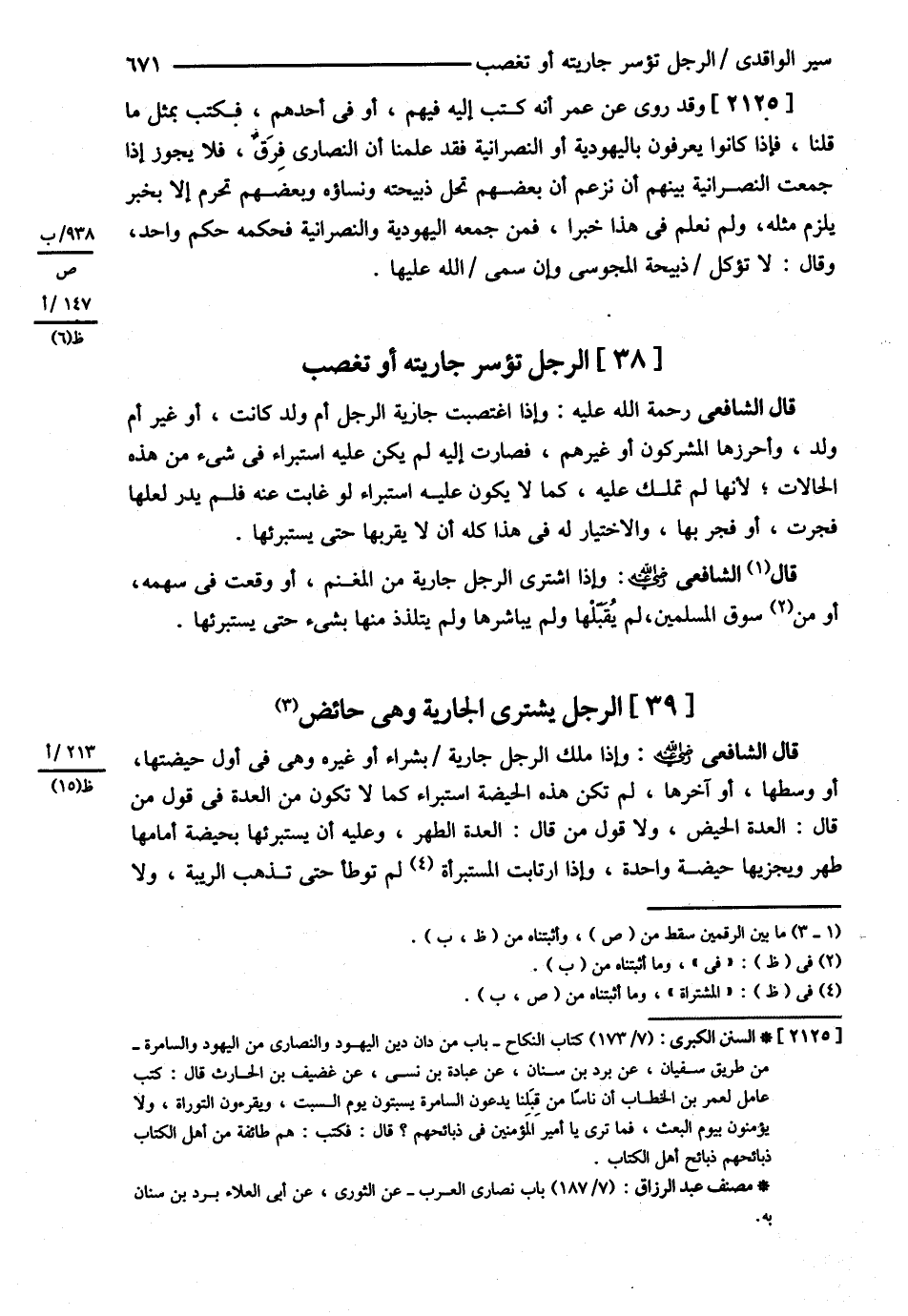 قَالَ الشَّافِعِيُّ : وَإِذَا اشْتَرَى الرَّجُلُ جَارِيَةً مِنْ الْمَغْنَمِ أَوْ وَقَعَتْ فِي سَهْمِهِ أَوْ مِنْ سُوقِ الْمُسْلِمِينَ لَمْ يُقَبِّلْهَا وَلَمْ يُبَاشِرْهَا وَلَمْ يَتَلَذَّذْ مِنْهَا بِشَيْءٍ حَتَّى يَسْتَبْرِئَهَا .
