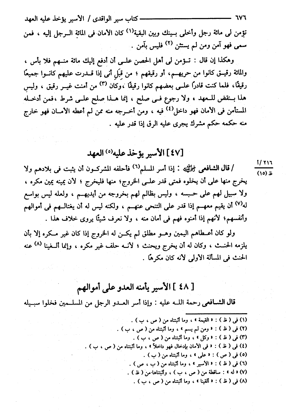 قَالَ الشَّافِعِيُّ : رحمه الله تعالى : وَإِذَا أَسَرَ الْعَدُوُّ الرَّجُلَ مِنْ الْمُسْلِمِينَ فَخَلُّوا سَبِيلَهُ@
