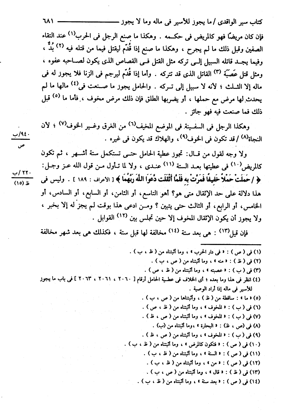 فَإِنْ كَانَ مَرِيضًا فَهُوَ كَالْمَرِيضِ فِي حُكْمِهِ وَهَكَذَا مَا صَنَعَ الرَّجُلُ فِي الْحَرْبِ عِنْدَ الْتِقَاءِ الصَّفَّيْنِ وَقَبْلَ ذَلِكَ مَا لَمْ يُجْرَحْ وَهَكَذَا مَا صَنَعَ إذَا قَدِمَ لِيَقْتُلَ فِيمَا مَنْ قَتْلُهُ فِيهِ بُدٌّ وَفِيمَا يَجِدُ قَاتِلُهُ السَّبِيلَ إلَى تَرْكِهِ مِثْلُ الْقَتْلِ فِي الْقِصَاصِ الَّذِي يَكُونُ لِصَاحِبِهِ عَفْوُهُ وَمِثْلُ قَتْلِ عَصَبَةِ الْقَاتِلِ الَّذِي قَدْ تَتْرُكُهُ وَمَا إذَا قَدِمَ لِيُرْجَمَ فِي الزِّنَا فَلاَ يَجُوزُ لَهُ فِي مَالِهِ إلَّا الثُّلُثَ لِأَنَّهُ لاَ سَبِيلَ إلَى تَرْكِهِ . وَالْحَامِلُ يَجُوزُ مَا صَنَعَتْ فِي مَالِهَا مَا لَمْ يَحْدُثْ لَهَا مَرَضٌ مَعَ حَمْلِهَا أَوْ يَضْرِبُهَا الطَّلْقُ فَإِنَّ ذَلِكَ مَرَضٌ مَخُوفٌ , فَأَمَّا مَا قَبْلَ ذَلِكَ فَمَا صَنَعْت فِيهِ فَهُوَ جَائِزٌ , وَهَكَذَا الرَّجُلُ فِي السَّفِينَةِ فِي الْمَوْضِعِ الْمَخُوفِ مِنْ الْغَرَقِ وَغَيْرِ الْمَخُوفِ لِأَنَّ النَّجَاةَ قَدْ تَكُونُ فِي الْمَخُوفِ وَالْهَلاَكُ قَدْ يَكُونُ فِي غَيْرِهِ وَلاَ وَجْهَ لِقَوْلِ مَنْ قَالَ : نُجَوِّزُ عَطِيَّةَ الْحَامِلِ حَتَّى تَسْتَكْمِلَ سِتَّةَ أَشْهُرٍ ثُمَّ تَكُونُ كَالْمَرِيضِ فِي عَطِيَّتِهَا بَعْدَ السِّتَّةِ عِنْدِي وَلاَ لِمَا تَأَوَّلَ مِنْ قَوْلِ اللَّهِ عَزَّ وَجَلَّ : ? حَمَلَتْ حَمْلاً خَفِيفًا فَمَرَّتْ بِهِ فَلَمَّا أَثْقَلَتْ دَعَوَا اللَّهَ رَبَّهُمَا } وَلَيْسَ فِي هَذَا دَلاَلَةٌ عَلَى حَدِّ الْإِثْقَالِ مَتَى هُوَ ؟ أَهُوَ التَّاسِعُ أَوْ الثَّامِنُ أَوْ السَّابِعُ أَوْ السَّادِسُ أَوْ الْخَامِسُ أَوْ الرَّابِعُ أَوْ الثَّالِثُ حَتَّى يَتَبَيَّنَ ؟ وَمَنْ ادَّعَى هَذَا بِوَقْتٍ لَمْ يَجُزْ لَهُ إلَّا بِخَبَرٍ وَلاَ يَجُوزُ أَنْ يَكُونَ الْإِثْقَالُ الْمَخُوفُ إلَّا حِينَ تَجْلِسُ بَيْنَ الْقَوَابِلِ , فَإِنْ قِيلَ : هِيَ بَعْدَ سِتَّةٍ مَخَافَةً لَهَا قَبْلَ سِتَّةٍ فَكَذَلِكَ هِيَ بَعْدَ شَهْرٍ مُخَالِفَةً@