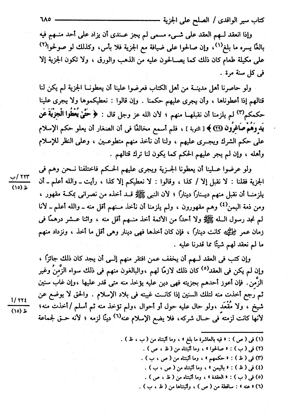 وَإِذَا عَقَدَ لَهُمْ الْعَقْدَ عَلَى شَيْءٍ مُسَمًّى لَمْ يَجُزْ عِنْدِي أَنْ يُزَادَ عَلَى أَحَدٍ مِنْهُمْ فِيهِ بَالِغًا يُسْرُهُ مَا بَلَغَ وَإِنْ صَالَحُوا عَلَى ضِيَافَةٍ مَعَ الْجِزْيَةِ فَلاَ بَأْسَ وَكَذَلِكَ لَوْ صَالَحُوا عَلَى مَكِيلَةِ طَعَامٍ كَانَ ذَلِكَ كَمَا يُصَالِحُونَ عَلَيْهِ مِنْ الذَّهَبِ وَالْوَرِقِ وَلاَ تَكُونُ الْجِزْيَةُ إلَّا فِي كُلِّ سَنَةٍ مَرَّةً وَلَوْ حَاصَرْنَا أَهْلَ مَدِينَةٍ مِنْ أَهْلِ الْكِتَابِ فَعَرَضُوا عَلَيْنَا أَنْ يُعْطُونَا الْجِزْيَةَ لَمْ يَكُنْ لَنَا قِتَالُهُمْ إذَا أَعْطُونَاهَا وَأَنْ يَجْرِيَ عَلَيْهِمْ حُكْمُنَا وَإِنْ قَالُوا نُعْطِيكُمُوهَا وَلاَ يَجْرِي عَلَيْنَا حُكْمُكُمْ لِمَ لَمْ يَلْزَمْنَا أَنْ نَقْبَلَهَا مِنْهُمْ لِأَنَّ اللَّهَ عَزَّ وَجَلَّ قَالَ { حَتَّى يُعْطُوا الْجِزْيَةَ عَنْ يَدٍ وَهُمْ صَاغِرُونَ } فَلَمْ أَسْمَعْ مُخَالِفًا فِي أَنَّ الصَّغَارَ أَنْ يَعْلُوَ حُكْمُ الْإِسْلاَمِ عَلَى حُكْمِ الشِّرْكِ وَيَجْرِي عَلَيْهِمْ وَلَنَا أَنْ نَأْخُذَ مِنْهُمْ مُتَطَوِّعِينَ وَعَلَى النَّظَرِ لِلْإِسْلاَمِ وَأَهْلِهِ وَإِنْ لَمْ يَجْرِ عَلَيْهِمْ الْحُكْمُ كَمَا يَكُونُ لَنَا تَرْكُ قِتَالِهِمْ وَلَوْ عَرَضُوا عَلَيْنَا أَنْ يُعْطُونَا الْجِزْيَةَ وَيَجْرِي عَلَيْهِمْ الْحُكْمُ فَاخْتَلَفْنَا نَحْنُ وَهُمْ فِي الْجِزْيَةِ فَقُلْنَا : لاَ نَقْبَلُ إلَّا كَذَا وَقَالُوا : لاَ نُعْطِيكُمْ إلَّا كَذَا رَأَيْت وَاَللَّهُ تَعَالَى أَعْلَمُ أَنْ يَلْزَمَنَا أَنْ نَقْبَلَ مِنْهُمْ دِينَارًا دِينَارًا لِأَنَّ النَّبِيَّ - صلى الله عليه وسلم - قَدْ أَخَذَهُ مِنْ نَصْرَانِيٍّ بِمَكَّةَ مَقْهُورٍ وَمِنْ ذِمَّةِ الْيَمَنِ وَهُمْ مَقْهُورُونَ وَلَمْ يَلْزَمْنَا أَنْ نَأْخُذَ مِنْهُمْ أَقَلَّ مِنْهُ وَاَللَّهُ تَعَالَى أَعْلَمُ لِأَنَّا لَمْ نَجِدُ رَسُولَ اللَّهِ - صلى الله عليه وسلم - وَلاَ أَحَدًا مِنْ الْأَئِمَّةِ أَخَذَ مِنْهُمْ أَقَلَّ مِنْهُ وَاثْنَا عَشَرَ دِرْهَمًا فِي زَمَانِ عُمَرَ رضي الله تعالى عنه كَانَتْ دِينَارًا فَإِنْ كَانَ أَخَذَهَا فَهِيَ دِينَارٌ وَهِيَ أَقَلُّ مَا أُخِذَ وَنَزْدَادُ مِنْهُمْ مَا لَمْ نَعْقِدْ لَهُمْ شَيْئًا مِمَّا قَدَرْنَا عَلَيْهِ وَإِنْ كُنْت فِي الْعَقْدِ لَهُمْ أَنْ يُخَفِّفَ عَمَّنْ افْتَقَرَ مِنْهُمْ إلَى أَنْ يَجِدَ كَانَ ذَلِكَ جَائِزًا وَإِنْ لَمْ يَكُنْ فِي الْعُقْدَةَ كَانَ ذَلِكَ لاَزِمًا لَهُمْ وَالْبَالِغُونَ مِنْهُمْ فِي ذَلِكَ سَوَاءٌ الزَّمِنُ وَغَيْرُ الزَّمِنِ فَإِنْ أَعْوَزَ أَحَدُهُمْ بِجِزْيَتِهِ فَهِيَ دَيْنٌ عَلَيْهِ يُؤْخَذُ مِنْهُ مَتَى قَدَرَ عَلَيْهَا وَإِنْ غَابَ سِنِينَ ثُمَّ رَجَعَ أُخِذَتْ مِنْهُ لِتِلْكَ السِّنِينَ إذَا كَانَتْ غَيْبَتُهُ فِي بِلاَدِ الْإِسْلاَمِ وَالْحَقُّ لاَ يُوضَعُ عَنْ شَيْخٍ وَلاَ مُقْعَدٍ وَلَوْ حَالَ عَلَيْهِ حَوْلٌ أَوْ أَحْوَالٌ وَلَمْ تُؤْخَذْ مِنْهُ ثُمَّ أَسْلَمَ أُخِذَتْ مِنْهُ لِأَنَّهَا كَانَتْ لَزِمَتْهُ فِي حَالِ شِرْكِهِ فَلاَ يَضَعُ الْإِسْلاَمُ عَنْهُ دَيْنًا لَزِمَهُ لِأَنَّهُ حَقٌّ لِجَمَاعَةِ@