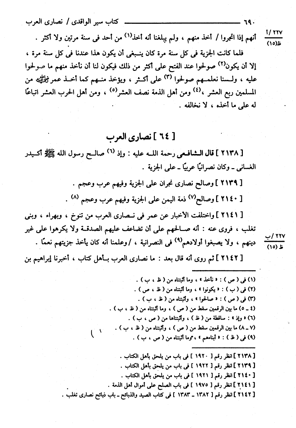 قَالَ الشَّافِعِيُّ : رحمه الله تعالى : وَإِذًا صَالَحَ رَسُولُ اللَّهِ - صلى الله عليه وسلم - أُكَيْدِرَ الْغَسَّانِيَّ وَكَانَ نَصْرَانِيًّا عَرَبِيًّا عَلَى الْجِزْيَةِ وَصَالَحَ نَصَارَى نَجْرَانَ عَلَى الْجِزْيَةِ وَفِيهِمْ عَرَبٌ وَعَجَمٌ وَصَالَحَ ذِمَّةَ الْيَمَنِ عَلَى الْجِزْيَةِ وَفِيهِمْ عَرَبٌ وَعَجَمٌ وَاخْتَلَفَتْ الْأَخْبَارُ عَنْ عُمَرَ فِي نَصَارَى الْعَرَبِ مِنْ تَنُوخِ وَبَهْرَاءَ وَبَنِي تَغْلِبَ فَرَوَى عَنْهُ أَنَّهُ صَالَحَهُمْ عَلَى أَنْ تُضَاعَفَ عَلَيْهِمْ الصَّدَقَةُ وَلاَ يُكْرَهُوا عَلَى غَيْرِ دِينِهِمْ وَلاَ يَصْبُغُوا أَوْلاَدَهُمْ فِي النَّصْرَانِيَّةِ وَعَلَّمَنَا أَنَّهُ كَانَ يَأْخُذُ جِزْيَتَهُمْ نِعَمًا ثُمَّ رَوَى أَنَّهُ قَالَ بَعْدَ مَا نَصَارَى الْعَرَبِ بِأَهْلِ كِتَابٍ أَخْبَرَنَا إبْرَاهِيمُ بْنُ @