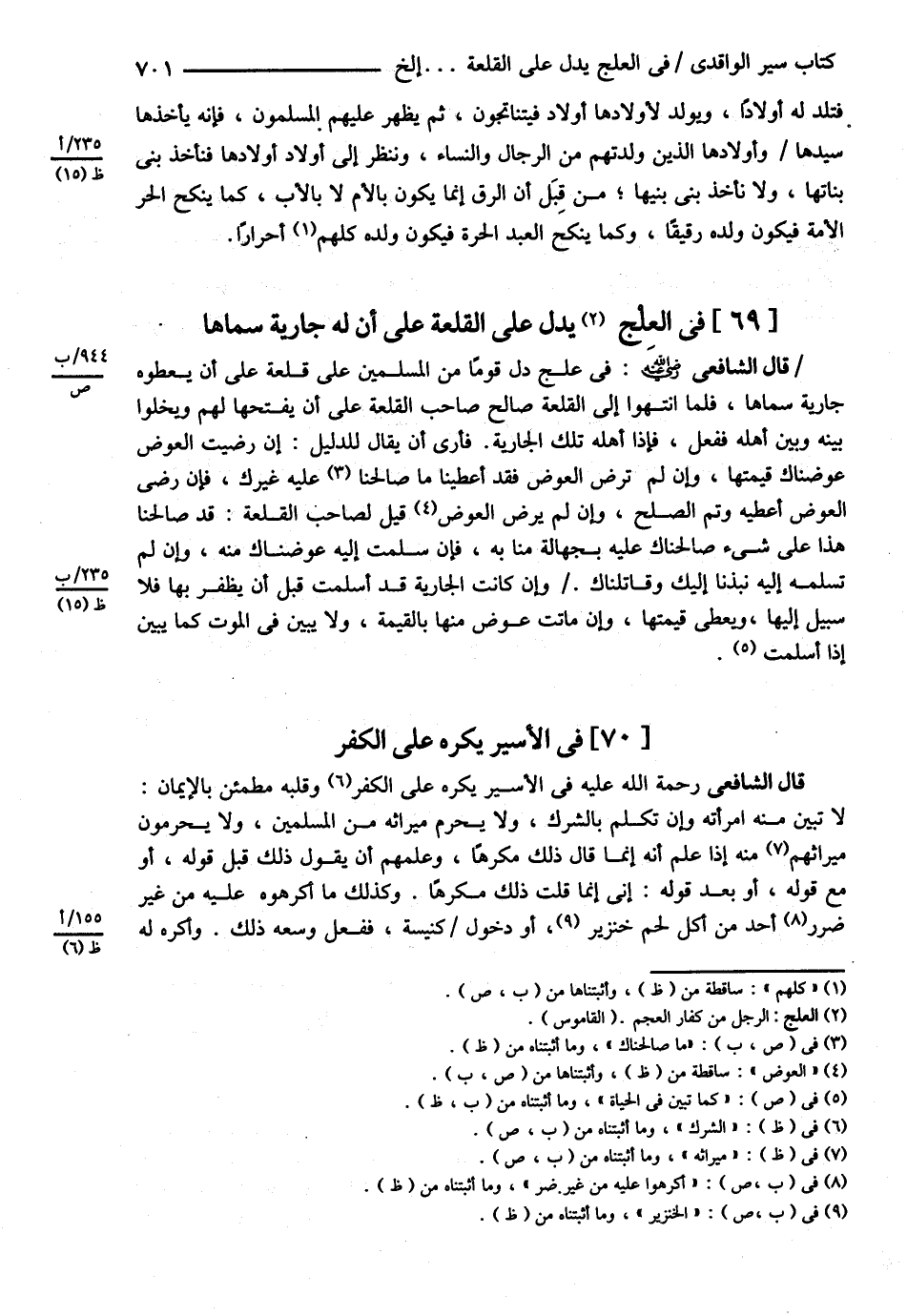 فَتَلِدُ لَهُ أَوْلاَدًا وَيُولَدُ لِأَوْلاَدِهَا أَوْلاَدٌ فيتناتجون ثُمَّ يَظْهَرُ عَلَيْهِمْ الْمُسْلِمُونَ فَإِنَّهُ يَأْخُذُهَا سَيِّدُهَا وَأَوْلاَدَهَا الَّذِينَ وَلَدَتْهُمْ مِنْ الرِّجَالِ وَالنِّسَاءِ وَنَنْظُرُ إلَى أَوْلاَدِ أَوْلاَدِهَا فَنَأْخُذُ بَنِي بَنَاتِهَا وَلاَ نَأْخُذُ بَنِي بَنِيهَا مِنْ قِبَلِ أَنَّ الرِّقَّ إنَّمَا يَكُونُ بِالْأُمِّ لاَ بِالْأَبِ كَمَا يَنْكِحُ الْحُرُّ الْأَمَةَ فَيَكُونُ وَلَدُهُ رَقِيقًا وَكَمَا يَنْكِحُ الْعَبْدُ الْحُرَّةَ فَيَكُونُ وَلَدُهُ كُلُّهُمْ أَحْرَارًا .