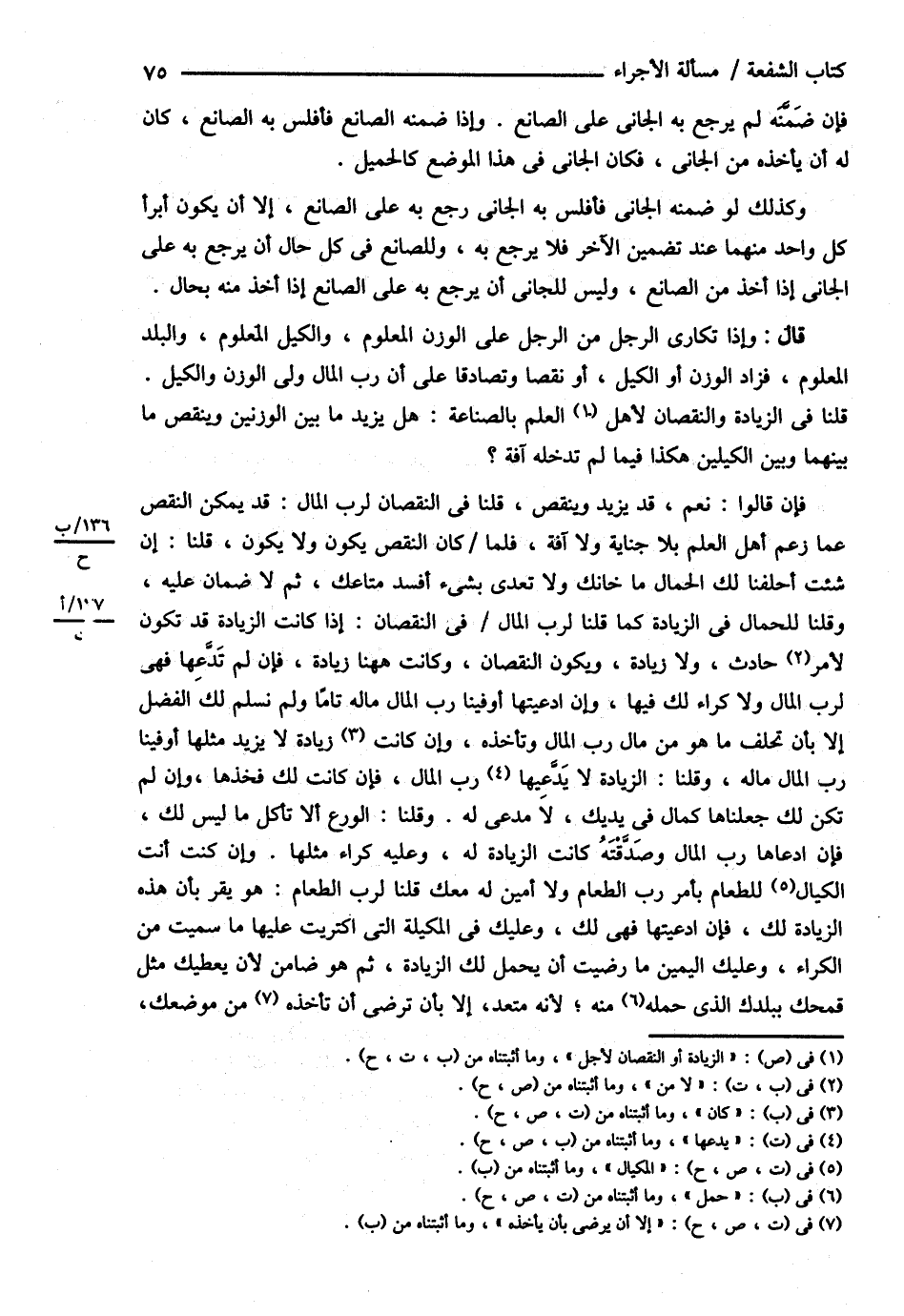 فَإِنْ ضَمَّنَهُ لَمْ يَرْجِعْ بِهِ الْجَانِي عَلَى الصَّانِعِ , وَإِذَا ضَمَّنَهُ الصَّانِعَ فَأَفْلَسَ بِهِ الصَّانِعُ كَانَ لَهُ أَنْ يَأْخُذَ مِنْ الْجَانِي وَكَانَ الْجَانِي فِي هَذَا الْمَوْضِعِ كَالْحَمِيلِ , وَكَذَلِكَ لَوْ ضَمَّنَهُ الْجَانِيَ فَأَفْلَسَ بِهِ الْجَانِي رَجَعَ بِهِ عَلَى الصَّانِعِ إلَّا أَنْ يَكُونَ أَبْرَأَ كُلَّ وَاحِدٍ مِنْهُمَا عِنْدَ تَضْمِينِ الْآخَرِ فَلاَ يَرْجِعُ بِهِ وَلِلصَّانِعِ فِي كُلِّ حَالٍ وَيَرْجِعُ بِهِ عَلَى الْجَانِي إذَا أَخَذَ مِنْ الصَّانِعِ وَلَيْسَ لِلْجَانِي أَنْ يَرْجِعَ بِهِ عَلَى الصَّانِعِ إذَا أَخَذَ مِنْهُ بِحَالٍ . قَالَ : وَإِذَا تَكَارَى الرَّجُلُ مِنْ الرَّجُلِ عَلَى الْوَزْنِ الْمَعْلُومِ وَالْكَيْلِ الْمَعْلُومِ وَالْبَلَدِ الْمَعْلُومِ فَزَادَ الْوَزْنُ , أَوْ الْكَيْلُ , أَوْ نَقَصَا وَتَصَادَقَا عَلَى أَنَّ رَبَّ الْمَالِ وَلِيَ الْوَزْنَ وَالْكَيْلَ . قُلْنَا : فِي الزِّيَادَةِ وَالنُّقْصَانِ لِأَهْلِ الْعِلْمِ بِالصِّنَاعَةِ هَلْ يَزِيدُ مَا بَيْنَ الْوَزْنَيْنِ وَيَنْقُصُ مَا بَيْنَهُمَا . وَبَيْنَ الْكَيْلَيْنِ هَكَذَا فِيمَا لَمْ تَدْخُلْهُ آفَةٌ ؟ فَإِنْ قَالُوا نَعَمْ قَدْ يَزِيدُ وَيَنْقُصُ . قُلْنَا فِي النُّقْصَانِ لِرَبِّ الْمَالِ قَدْ يُمْكِنُ عَمَّا زَعَمَ أَهْلُ الْعِلْمِ بِلاَ جِنَايَةٍ , وَلاَ آفَةٍ , فَلَمَّا كَانَ النَّقْصُ يَكُونُ وَلاَ يَكُونُ , قُلْنَا : إنْ شِئْت أَحَلَفْنَا لَك الْحَمَّالَ مَا خَانَك , وَلاَ تَعَدَّى بِشَيْءٍ أَفْسَدَ مَتَاعَك ثُمَّ لاَ ضَمَانَ عَلَيْهِ وَقُلْنَا لِلْحَمَّالِ فِي الزِّيَادَةِ كَمَا قُلْنَا لِرَبِّ الْمَالِ فِي النُّقْصَانِ إذَا كَانَتْ الزِّيَادَةُ قَدْ تَكُونُ لاَ مِنْ حَادِثٍ , وَلاَ زِيَادَةٍ وَيَكُونُ النُّقْصَانُ وَكَانَتْ هَا هُنَا زِيَادَةٌ فَإِنْ لَمْ تَدَعْهَا فَهِيَ لِرَبِّ الْمَالِ , وَلاَ كِرَاءَ لَك فِيهَا , وَإِنْ ادَّعَيْتهَا أَوْفَيْنَا رَبَّ الْمَالِ مَالَهُ تَامًّا , وَلَمْ نُسَلِّمْ لَك الْفَضْلَ إلَّا بِأَنْ تَحْلِفَ مَا هُوَ مِنْ مَالِ رَبِّ الْمَالِ وَتَأْخُذُهُ , وَإِنْ كَانَ زِيَادَةً لاَ يَزِيدُ مِثْلُهَا أَوْفَيْنَا رَبَّ الْمَالِ مَالَهُ وَقُلْنَا الزِّيَادَةُ لاَ يَدَّعِيهَا رَبُّ الْمَالِ فَإِنْ كَانَتْ لَك فَخُذْهَا , وَإِنْ لَمْ تَكُنْ لَك جَعَلْنَاهَا كَمَالٍ فِي يَدَيْك لاَ مُدَّعِيَ لَهُ وَقُلْنَا الْوَرَعُ أَنْ لاَ تَأْكُلَ مَا لَيْسَ لَك فَإِنْ ادَّعَاهَا رَبُّ الْمَالِ وَصَدَّقَتْهُ كَانَتْ الزِّيَادَةُ لَهُ وَعَلَيْهِ كِرَاءُ مِثْلِهَا , وَإِنْ كُنْت أَنْتَ الْكَيَّالَ لِلطَّعَامِ بِأَمْرِ رَبِّ الطَّعَامِ , وَلاَ أَمِينَ مَعَك قُلْنَا لِرَبِّ الطَّعَامِ هُوَ يُقِرُّ بِأَنَّ هَذِهِ الزِّيَادَةَ لَك . فَإِنْ ادَّعَيْتهَا فَهِيَ لَك وَعَلَيْك فِي الْمَكِيلَةِ الَّتِي اكْتَرَيْت عَلَيْهَا مَا سَمَّيْت مِنْ الْكِرَاءِ وَعَلَيْك الْيَمِينُ مَا رَضِيت أَنْ يَحْمِلَ لَك الزِّيَادَةَ ثُمَّ هُوَ ضَامِنٌ لاََنْ يُعْطِيَك مِثْلَ قَمْحِك بِبَلَدِك الَّذِي حَمَلَ ; لِأَنَّهُ مُتَعَدٍّ إلَّا بِأَنْ تَرْضَى أَنْ تَأْخُذَهُ مِنْ مَوْضِعِك@