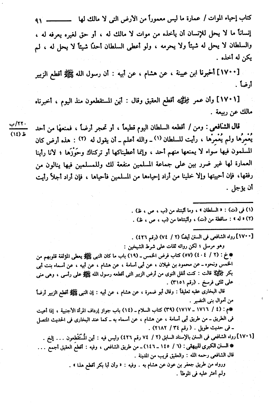 إنْسَانًا مَا لاَ يَحِلُّ لِلْإِنْسَانِ أَنْ يَأْخُذَهُ مِنْ مَوَاتٍ لاَ مَالِكَ لَهُ , أَوْ حَقٍّ لِغَيْرِهِ يَعْرِفُهُ لَهُ وَالسُّلْطَانُ لاَ يُحِلُّ لَهُ شَيْئًا , وَلاَ يُحَرِّمُهُ , وَلَوْ أَعْطَى السُّلْطَانُ أَحَدًا شَيْئًا لاَ يَحِلُّ لَهُ لَمْ يَكُنْ لَهُ أَخْذُهُ ( أَخْبَرَنَا ) ابْنُ عُيَيْنَةَ عَنْ هِشَامٍ عَنْ أَبِيهِ { أَنَّ رَسُولَ اللَّهِ - صلى الله عليه وسلم - أَقْطَعَ الزُّبَيْرَ أَرْضًا } وَأَنَّ عُمَرَ رضي الله عنه أَقْطَعَ الْعَقِيقَ وَقَالَ : أَيْنَ الْمُسْتَقْطِعُونَ مُنْذُ الْيَوْمِ أَخْبَرَنَاهُ مَالِكٌ عَنْ رَبِيعَةَ .