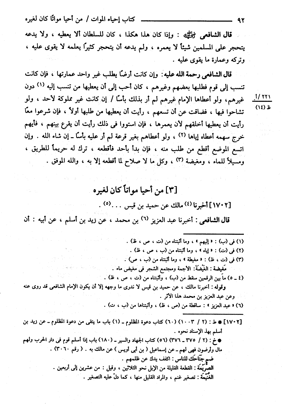 قَالَ الشَّافِعِيُّ : وَإِذَا كَانَ هَذَا هَكَذَا كَانَ لِلسُّلْطَانِ أَنْ لاَ يُعْطِيَهُ , وَلاَ يَدَعَهُ يَتَحَجَّرُ عَلَى الْمُسْلِمِينَ شَيْئًا لاَ يَعْمُرُهُ , وَلَمْ يَدَعْهُ أَنْ يَتَحَجَّرَ كَثِيرًا يَعْلَمُهُ لاَ يَقْوَى عَلَيْهِ وَتَرَكَهُ وَعِمَارَةُ مَا يَقْوَى عَلَيْهِ .