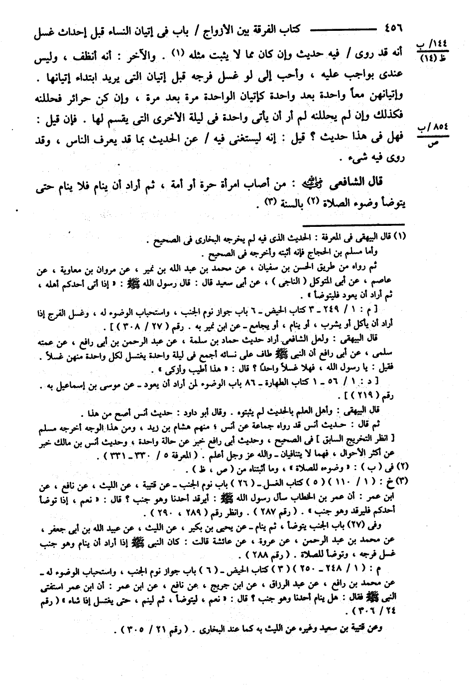 قَالَ الشَّافِعِيُّ : مَنْ أَصَابَ امْرَأَةً حُرَّةً أَوْ أَمَةً ثُمَّ أَرَادَ أَنْ يَنَامَ فَلاَ يَنَامَ حَتَّى يَتَوَضَّأَ وُضُوءَهُ لِلصَّلاَةِ بِالسُّنَّةِ .@