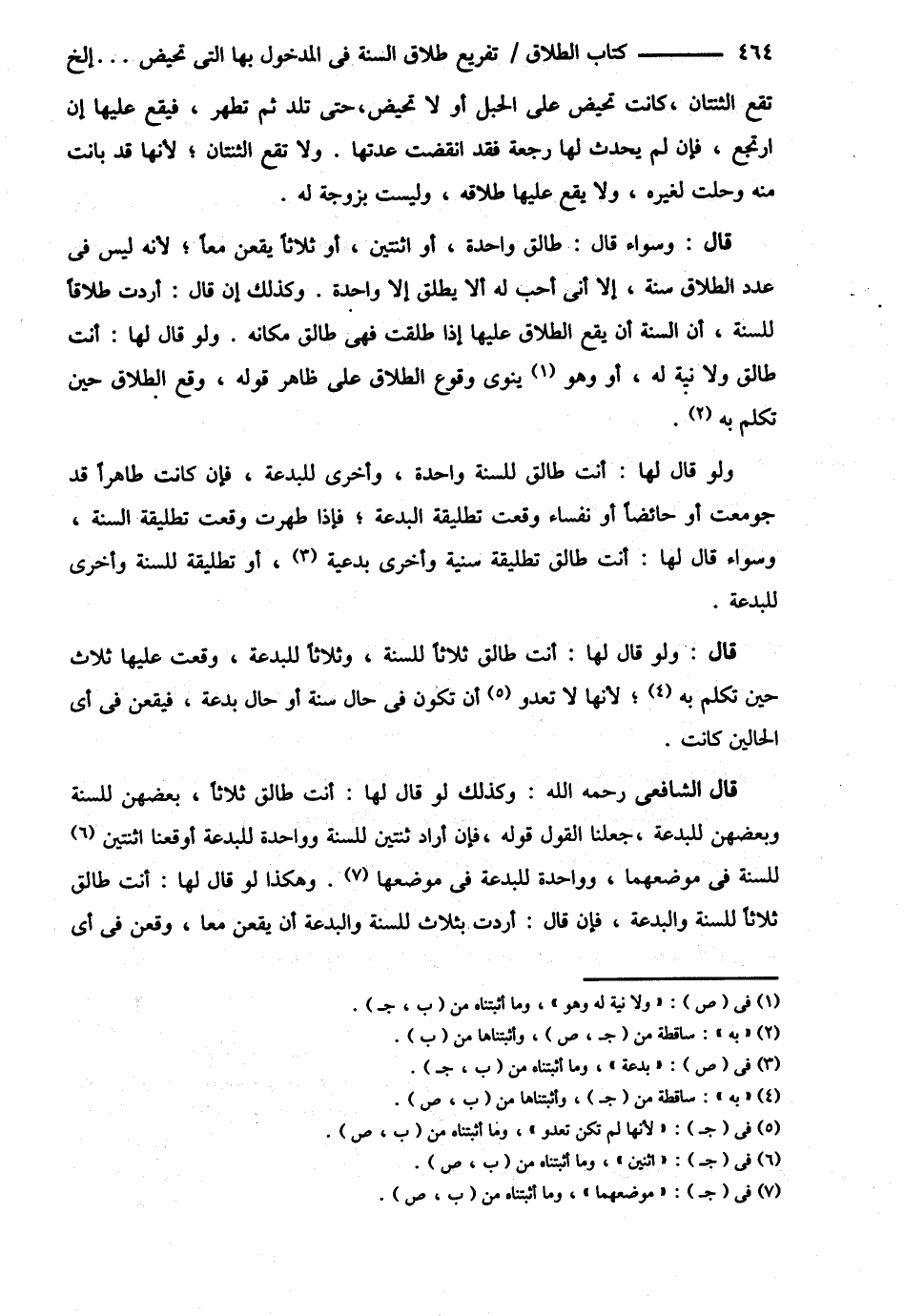 ( قَالَ ) وَلَوْ قَالَ لَهَا أَنْتِ طَالِقٌ ثَلاَثًا لِلسُّنَّةِ وَثَلاَثًا لِلْبِدْعَةِ وَقَعَتْ عَلَيْهَا ثَلاَثًا حِينَ تَكَلَّمَ بِهِ لِأَنَّهَا لاَ تَعْدُو أَنْ تَكُونَ فِي حَالِ سُنَّةٍ أَوْ حَالِ بِدْعَةٍ فَيَقَعْنَ فِي أَيِّ الْحَالَيْنِ كَانَتْ