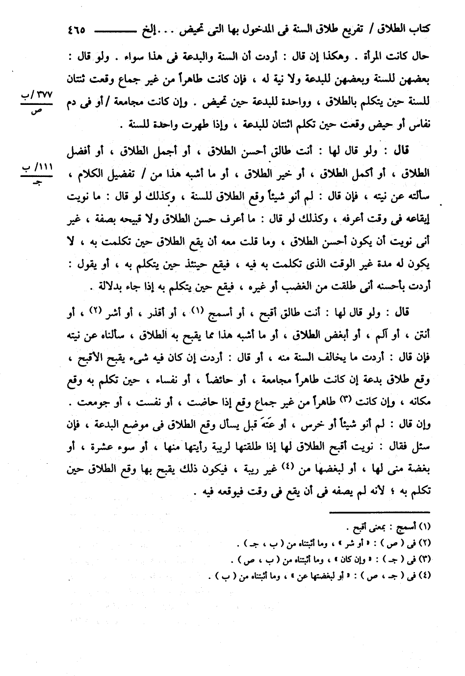 ( قَالَ ) وَلَوْ قَالَ لَهَا أَنْتِ طَالِقٌ أَقْبَحَ أَوْ أَسْمَجَ أَوْ أَقْذَرَ أَوْ أَشَرَّ أَوْ أَنْتَنَ أَوْ آلَمَ أَوْ أَبْغَضَ الطَّلاَقِ أَوْ مَا أَشْبَهَ هَذَا مِمَّا يَقْبُحُ بِهِ الطَّلاَقُ سَأَلْنَاهُ عَنْ نِيَّتِهِ فَإِنْ قَالَ أَرَدْت مَا يُخَالِفُ السُّنَّةَ مِنْهُ أَوْ قَالَ أَرَدْت إنْ كَانَ فِيهِ شَيْءٌ يُقَبِّحُ الْأَقْبَحَ وَقَعَ طَلاَقَ بِدْعَةٍ إنْ كَانَتْ طَاهِرًا مُجَامَعَةً أَوْ حَائِضًا أَوْ نُفَسَاءَ , حِينَ تَكَلَّمَ بِهِ وَقَعَ مَكَانَهُ , وَإِنْ كَانَتْ طَاهِرًا مِنْ غَيْرِ جِمَاعٍ وَقَعَ إذَا حَاضَتْ أَوْ نَفِسَتْ أَوْ جُومِعَتْ وَإِنْ قَالَ لَمْ أَنْوِ شَيْئًا أَوْ خَرِسَ أَوْ عَتِهَ قَبْلَ يَسْأَلَ وَقَعَ الطَّلاَقُ فِي مَوْضِعِ الْبِدْعَةِ فَإِنْ سُئِلَ فَقَالَ نَوَيْت أَقْبَحَ الطَّلاَقِ لَهَا إذَا طَلَّقْتهَا لِرِيبَةٍ رَأَيْتهَا مِنْهَا أَوْ سُوءِ عِشْرَةٍ أَوْ بَغْضَةً مِنِّي لَهَا أَوْ لِبُغْضِهَا مِنْ غَيْرِ رِيبَةٍ فَيَكُونُ ذَلِكَ يَقْبُحُ بِهَا وَقَعَ الطَّلاَقُ حِينَ تَكَلَّمَ بِهِ لِأَنَّهُ لَمْ يَصِفْهُ فِي أَنْ يَقَعَ فِي وَقْتٍ فَيُوقِعَهُ فِيهِ@