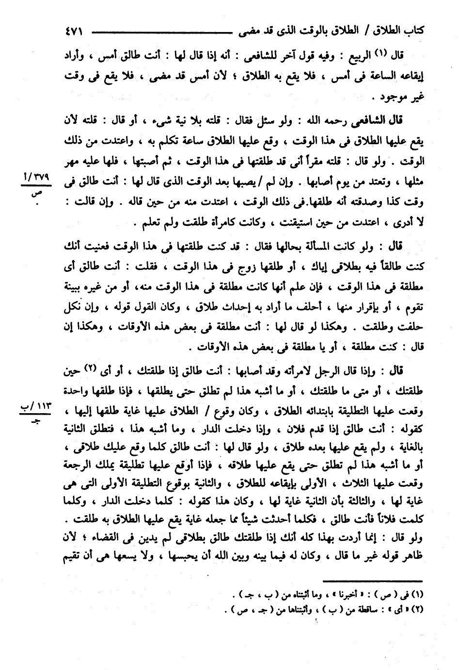 ( قَالَ الرَّبِيعُ ) وَفِيهِ قَوْلٌ آخَرُ لِلشَّافِعِيِّ أَنَّهُ إذَا قَالَ لَهَا أَنْتِ طَالِقٌ أَمْسِ وَأَرَادَ إيقَاعَهُ السَّاعَةَ فِي أَمْسِ فَلاَ يَقَعُ بِهِ الطَّلاَقُ لِأَنَّ أَمْسِ قَدْ مَضَى فَلاَ يَقَعُ فِي وَقْتٍ غَيْرِ مَوْجُودٍ