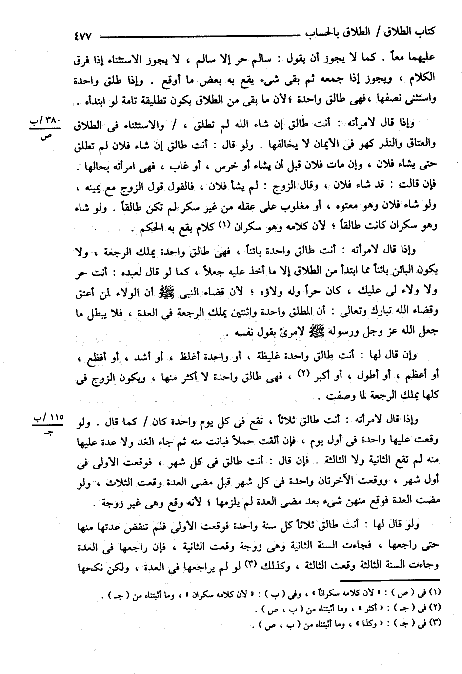 وَلَوْ قَالَ لَهَا أَنْتِ طَالِقٌ ثَلاَثًا كُلُّ سَنَةٍ وَاحِدَةٌ فَوَقَعَتْ الْأُولَى فَلَمْ تَنْقَضِ عِدَّتُهَا مِنْهَا حَتَّى رَاجَعَهَا فَجَاءَتْ السَّنَةُ الثَّانِيَةُ وَهِيَ زَوْجَةٌ وَقَعَتْ الثَّانِيَةُ فَإِنْ رَاجَعَهَا فِي الْعِدَّةِ وَجَاءَتْ السَّنَةُ الثَّالِثَةُ وَقَعَتْ الثَّالِثَةُ وَكَذَلِكَ لَوْ لَمْ يُرَاجِعْهَا فِي الْعِدَّةِ وَلَكِنْ نَكَحَهَا@