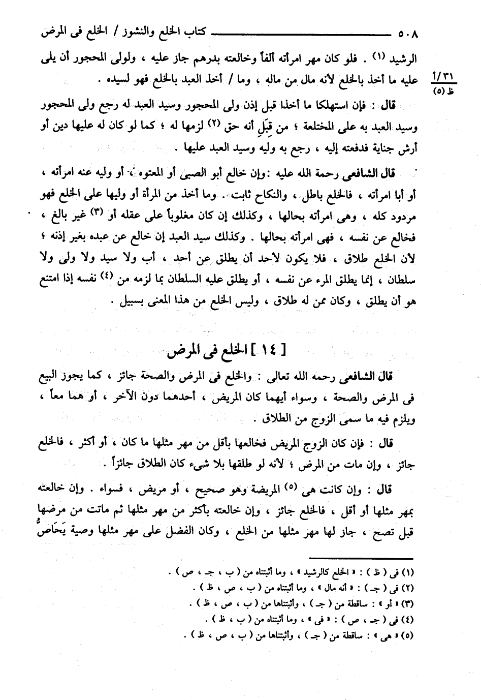 قَالَ الشَّافِعِيُّ : رحمه الله تعالى : وَالْخُلْعُ فِي الْمَرَضِ وَالصِّحَّةِ جَائِزٌ كَمَا يَجُوزُ الْبَيْعُ فِي الْمَرَضِ وَالصِّحَّةِ وَسَوَاءٌ أَيَّهُمَا كَانَ الْمَرِيضُ أَحَدَهُمَا دُونَ الْآخَرِ أَوْ هُمَا مَعًا وَيَلْزَمُهُ فِيهِ مَا سَمَّى الزَّوْجُ مِنْ الطَّلاَقِ ( قَالَ ) فَإِنْ كَانَ الزَّوْجُ الْمَرِيضُ فَخَالَعَهَا بِأَقَلَّ مِنْ مَهْرِ مِثْلِهَا مَا كَانَ أَوْ أَكْثَرَ فَالْخُلْعُ جَائِزٌ وَإِنْ مَاتَ مِنْ الْمَرَضِ لِأَنَّهُ لَوْ طَلَّقَهَا بِلاَ شَيْءٍ كَانَ الطَّلاَقُ جَائِزًا ( قَالَ ) وَإِنْ كَانَتْ هِيَ الْمَرِيضَةُ وَهُوَ صَحِيحٌ أَوْ مَرِيضٌ فَسَوَاءٌ وَإِنْ خَالَعَتْهُ بِمَهْرِ مِثْلِهَا أَوْ أَقَلَّ فَالْخُلْعُ جَائِزٌ , وَإِنْ خَالَعَتْهُ بِأَكْثَرَ مِنْ مَهْرِ مِثْلِهَا ثُمَّ مَاتَتْ مِنْ مَرَضِهَا قَبْلَ أَنْ تَصِحَّ جَازَ لَهَا مَهْرُ مِثْلِهَا مِنْ الْخُلْعِ وَكَانَ الْفَضْلُ عَلَى مَهْرِ مِثْلِهَا وَصِيَّةً يُحَاصَّ@