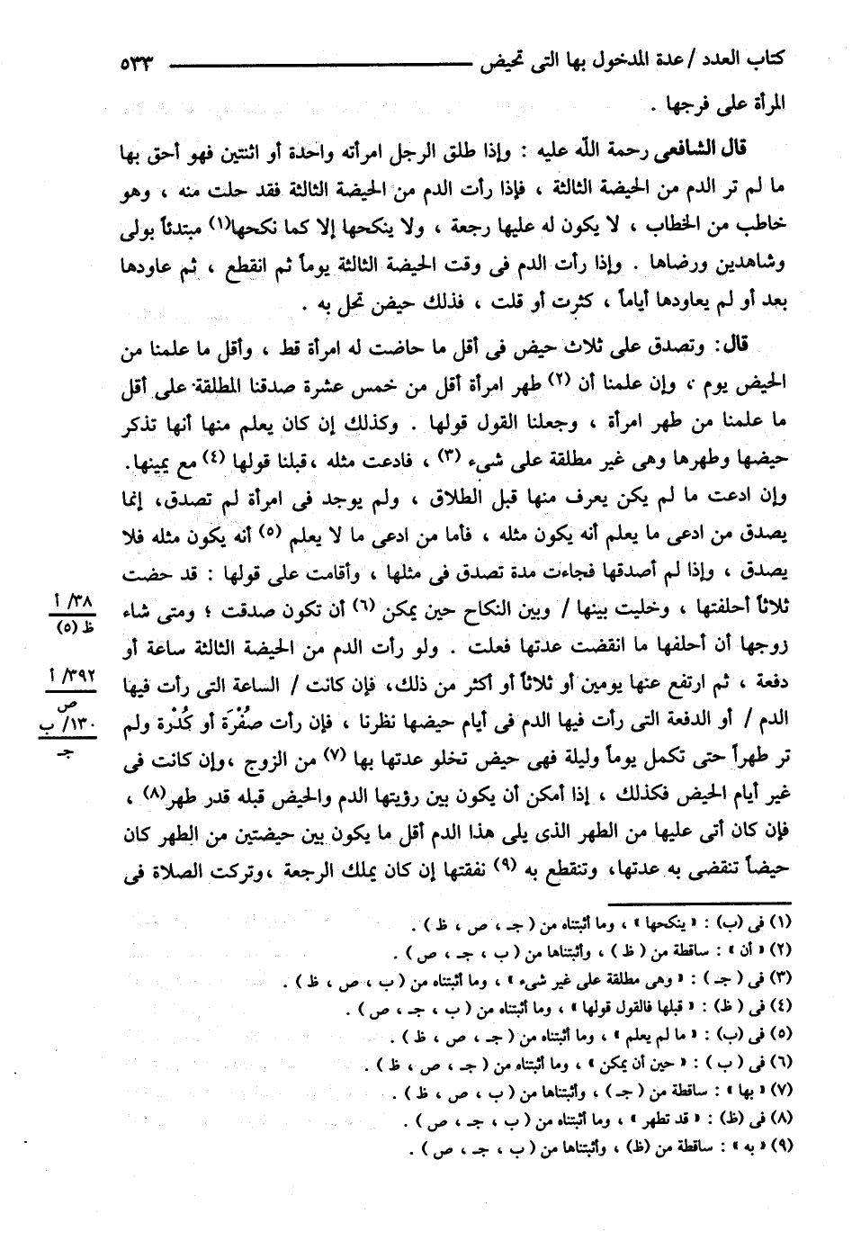 قَالَ الشَّافِعِيُّ : وَإِذَا طَلَّقَ الرَّجُلُ امْرَأَتَهُ وَاحِدَةً أَوْ اثْنَتَيْنِ فَهُوَ أَحَقُّ بِهَا مَا لَمْ تَرَ الدَّمَ مِنْ الْحَيْضَةِ الثَّالِثَةِ فَإِذَا رَأَتْ الدَّمَ مِنْ الْحَيْضَةِ الثَّالِثَةِ فَقَدْ حَلَّتْ مِنْهُ وَهُوَ خَاطِبٌ مِنْ الْخُطَّابِ لاَ يَكُونُ لَهُ عَلَيْهَا رَجْعَةٌ وَلاَ يَنْكِحُهَا إلَّا كَمَا يَنْكِحُهَا مُبْتَدِئًا بِوَلِيٍّ وَشَاهِدَيْنِ وَرِضَاهَا وَإِذَا رَأَتْ الدَّمَ فِي وَقْتِ الْحَيْضَةِ الثَّالِثَةِ يَوْمًا ثُمَّ انْقَطَعَ ثُمَّ عَاوَدَهَا بَعْدُ أَوْ لَمْ يُعَاوِدْهَا أَيَّامًا كَثُرَتْ أَوْ قَلَّتْ فَذَلِكَ حَيْضٌ تَحِلُّ بِهِ