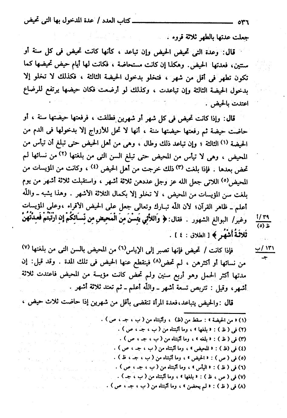 ( قَالَ ) وَإِذَا كَانَتْ تَحِيضُ فِي كُلِّ شَهْرٍ أَوْ شَهْرَيْنِ فَطَلُقَتْ فَرَفَعَتْهَا حَيْضَتُهَا سَنَةً أَوْ حَاضَتْ حَيْضَةً ثُمَّ رَفَعَتْهَا حَيْضَتُهَا سَنَةً أَنَّهَا لاَ تَحِلُّ لِلْأَزْوَاجِ إلَّا بِدُخُولِهَا فِي الدَّمِ مِنْ الْحَيْضَةِ الثَّالِثَةِ وَإِنْ تَبَاعَدَ ذَلِكَ وَطَالَ وَهِيَ مِنْ أَهْلِ الْحَيْضِ حَتَّى تَبْلُغَ أَنْ تَيْأَسَ مِنْ الْمَحِيضِ وَهِيَ لاَ تَيْأَسُ مِنْ الْمَحِيضِ حَتَّى تَبْلُغَ السِّنَّ الَّتِي مَنْ بَلَغَتْهَا مِنْ نِسَائِهَا لَمْ تَحِضْ بَعْدَهَا فَإِذَا بَلَغَتْ ذَلِكَ خَرَجَتْ مِنْ أَهْلِ الْحَيْضِ وَكَانَتْ مِنْ الْمُؤَيَّسَاتِ مِنْ الْمَحِيضِ اللَّاتِي جَعَلَ اللَّهُ عَزَّ وَجَلَّ عِدَدَهُنَّ ثَلاَثَةَ أَشْهُرٍ وَاسْتَقْبَلَتْ ثَلاَثَةَ أَشْهُرٍ مِنْ يَوْمِ بَلَغَتْ سِنَّ الْمُؤَيَّسَاتِ مِنْ الْمَحِيضِ لاَ تَخْلُو إلَّا بِكَمَالِ الثَّلاَثَةِ الْأَشْهُرِ وَهَذَا يُشْبِهُ وَاَللَّهُ تَعَالَى أَعْلَمُ ظَاهِرَ الْقُرْآنِ لِأَنَّ اللَّهَ تَبَارَكَ وَتَعَالَى جَعَلَ عَلَى الْحَيْضِ الْأَقْرَاءَ وَعَلَى الْمُؤَيَّسَاتِ وَغَيْرِ البوالغ الشُّهُورَ فَقَالَ { وَاَللَّائِي يَئِسْنَ مِنْ الْمَحِيضِ مِنْ نِسَائِكُمْ إنْ ارْتَبْتُمْ فَعِدَّتُهُنَّ ثَلاَثَةُ أَشْهُرٍ } فَإِذَا كَانَتْ تَحِيضُ فَإِنَّهَا تَصْبِرُ إلَى الْإِيَاسِ مِنْ الْمَحِيضِ بِالسِّنِّ الَّتِي مَنْ بَلَغَتْهَا مِنْ نِسَائِهَا أَوْ أَكْثَرِهِنَّ لَمْ تَحِضْ فَيَنْقَطِعُ عَنْهَا الْحَيْضُ فِي تِلْكَ الْمُدَّةِ , وَقَدْ قِيلَ إنَّ مُدَّتَهَا أَكْثَرُ الْحَمْلِ وَهُوَ أَرْبَعُ سِنِينَ وَلَمْ تَحِضْ كَانَتْ مُؤَيَّسَةً مِنْ الْمَحِيضِ فَاعْتَدَّتْ ثَلاَثَةَ أَشْهُرٍ وَقِيلَ تَتَرَبَّصُ تِسْعَةَ أَشْهُرٍ وَاَللَّهُ تَعَالَى أَعْلَمُ . ثُمَّ تَعْتَدُّ ثَلاَثَةَ أَشْهُرٍ