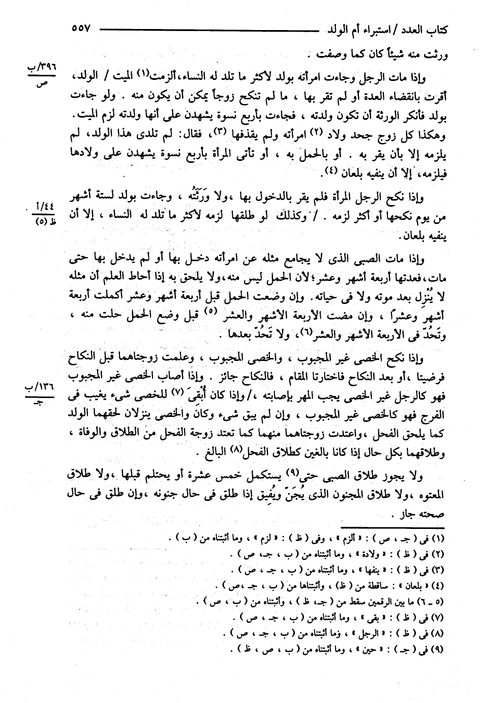 وَإِذَا نَكَحَ الْخَصِيُّ غَيْرُ الْمَجْبُوبِ وَالْخَصِيُّ الْمَجْبُوبُ وَعَلِمَتْ زَوْجَتَاهُمَا قَبْلَ النِّكَاحِ فَرَضِيَتَا أَوْ بَعْدَ النِّكَاحِ فَاخْتَارَتَا الْمُقَامَ فَالنِّكَاحُ جَائِزٌ , وَإِذَا أَصَابَ الْخَصِيُّ غَيْرُ الْمَجْبُوبِ فَهُوَ كَالرَّجُلِ غَيْرِ الْخَصِيِّ يَجِبُ الْمَهْرُ بِإِصَابَتِهِ , وَإِذَا كَانَ أُبْقِيَ لِلْخَصِيِّ شَيْءٌ يَغِيبُ فِي الْفَرْجِ فَهُوَ كَالْخَصِيِّ غَيْرِ الْمَجْبُوبِ , وَإِنْ لَمْ يَبْقَ شَيْءٌ وَكَانَ وَالْخَصِيُّ يُنْزِلاَنِ لَحِقَهُمَا الْوَلَدُ كَمَا يَلْحَقُ الْفَحْلَ وَاعْتَدَّتْ زَوْجَتَاهُمَا مِنْهُمَا كَمَا تَعْتَدُّ زَوْجَةُ الْفَحْلِ مِنْ الطَّلاَقِ وَالْوَفَاةِ وَطَلاَقُهُمَا بِكُلِّ حَالٍ إذَا كَانَا بَالِغَيْنِ كَطَلاَقِ الْفَحْلِ الْبَالِغِ .