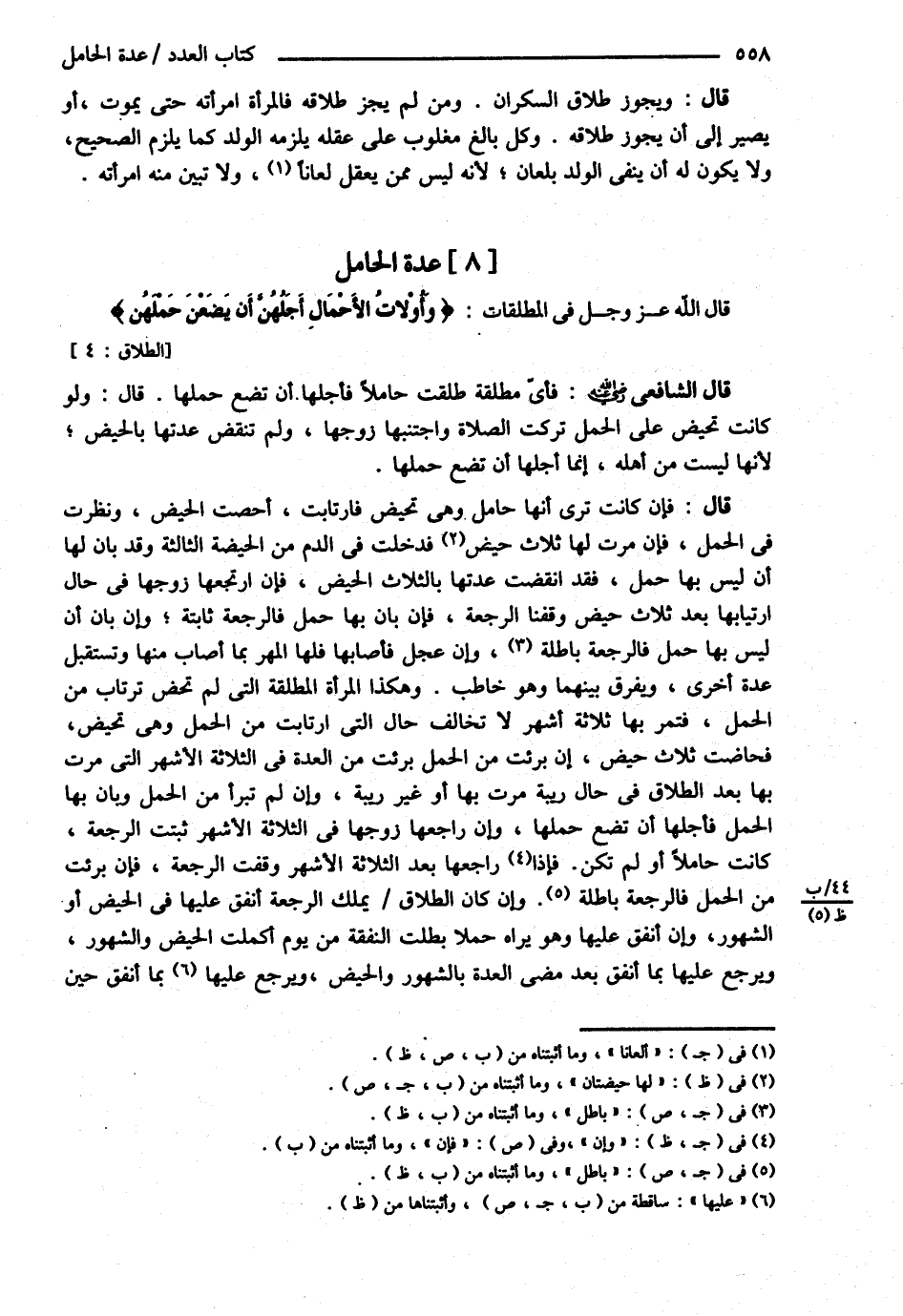 عِدَّةُ الْحَامِلِ قَالَ اللَّهُ عَزَّ وَجَلَّ فِي الْمُطَلَّقَاتِ { وَأُولاَتُ الْأَحْمَالِ أَجَلُهُنَّ أَنْ يَضَعْنَ حَمْلَهُنَّ } .