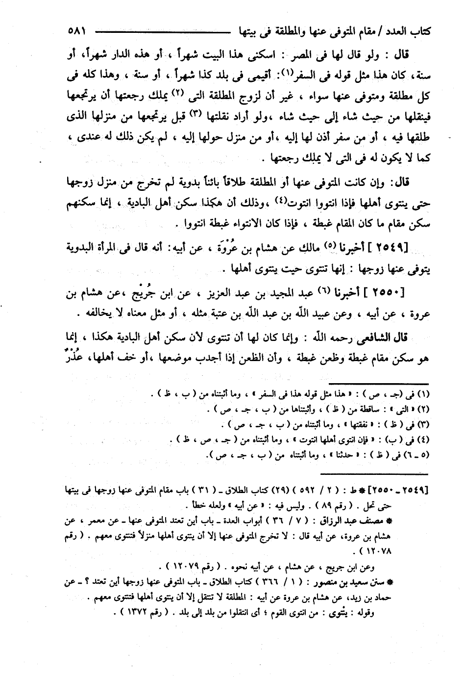 ( قَالَ ) وَلَوْ قَالَ لَهَا فِي الْمِصْرِ اُسْكُنِي هَذَا الْبَيْتَ شَهْرًا أَوْ هَذِهِ الدَّارَ شَهْرًا أَوْ سَنَةً . كَانَ هَذَا مِثْلَ قَوْلِهِ فِي السَّفَرِ أَقِيمِي فِي بَلَدِ كَذَا شَهْرًا أَوْ سَنَةً وَهَذَا كُلُّهُ فِي كُلِّ مُطَلَّقَةٍ وَمُتَوَفًّى عَنْهَا سَوَاءٌ , غَيْرَ أَنَّ لِزَوْجِ الْمُطَلَّقَةِ الَّتِي يَمْلِكُ رَجْعَتَهَا أَنْ يَرْتَجِعَهَا فَيَنْقُلَهَا مِنْ حَيْثُ شَاءَ إلَى حَيْثُ شَاءَ , وَلَوْ أَرَادَ نَقْلَتَهَا قَبْلَ أَنْ يَرْتَجِعَهَا مِنْ مَنْزِلِهَا الَّذِي طَلَّقَهَا فِيهِ أَوْ مِنْ سَفَرٍ أَذِنَ لَهَا إلَيْهِ أَوْ مِنْ مَنْزِلٍ حَوَّلَهَا إلَيْهِ لَمْ يَكُنْ ذَلِكَ لَهُ عِنْدِي كَمَا لاَ يَكُونُ لَهُ فِي الَّتِي لاَ يَمْلِكُ رَجْعَتَهَا