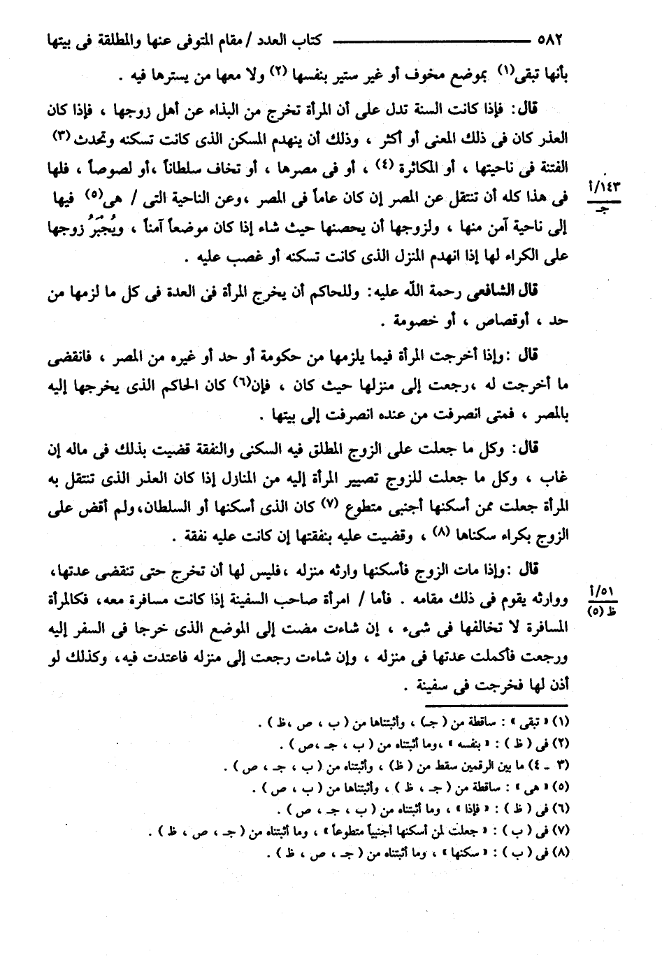 قَالَ الشَّافِعِيُّ : رحمه الله وَلِلْحَاكِمِ أَنْ يُخْرِجَ الْمَرْأَةَ فِي الْعِدَّةِ فِي كُلِّ مَا لَزِمَهَا مِنْ حَدٍّ أَوْ قِصَاصٍ أَوْ خُصُومَةٍ . ( قَالَ ) وَإِذَا أُخْرِجَتْ الْمَرْأَةُ فِيمَا يَلْزَمُهَا مِنْ حُكُومَةٍ أَوْ حَدٍّ أَوْ غَيْرِهِ مِنْ الْمِصْرِ فَانْقَضَى مَا أُخْرِجَتْ لَهُ رَجَعَتْ إلَى مَنْزِلِهَا حَيْثُ كَانَ فَإِنْ كَانَ الْحَاكِمُ الَّذِي يُخْرِجُهَا إلَيْهِ بِالْمِصْرِ فَمَتَى انْصَرَفَتْ مِنْ عِنْدِهِ انْصَرَفَتْ إلَى بَيْتِهَا . ( قَالَ ) وَكُلُّ مَا جَعَلْت عَلَى الزَّوْجِ الْمُطَلِّقِ فِيهِ السُّكْنَى وَالنَّفَقَةَ قَضَيْت بِذَلِكَ فِي مَالِهِ إنْ غَابَ وَكُلُّ مَا جَعَلْت لِلزَّوْجِ تَصْيِيرُ الْمَرْأَةُ إلَيْهِ مِنْ الْمَنَازِلِ إذَا كَانَ الْعُذْرُ الَّذِي تَنْتَقِلُ بِهِ الْمَرْأَةُ جَعَلْت لِمَنْ أَسْكَنَهَا أَجْنَبِيًّا مُتَطَوِّعًا كَانَ الَّذِي أَسْكَنَهَا أَوْ السُّلْطَانُ وَلَمْ أَقْضِ عَلَى الزَّوْجِ بِكِرَاءِ سَكَنِهَا وَقَضَيْت عَلَيْهِ بِنَفَقَتِهَا إنْ كَانَتْ عَلَيْهِ نَفَقَةٌ . ( قَالَ ) وَإِذَا مَاتَ الزَّوْجُ فَأَسْكَنَهَا وَارِثُهُ مَنْزِلَهُ فَلَيْسَ لَهَا أَنْ تَخْرُجَ حَتَّى تَنْقَضِيَ عِدَّتُهَا وَوَارِثُهُ يَقُومُ فِي ذَلِكَ مَقَامَهُ . فَأَمَّا امْرَأَةُ صَاحِبِ السَّفِينَةِ إذَا كَانَتْ مُسَافِرَةً مَعَهُ فَكَالْمَرْأَةِ الْمُسَافِرَةِ لاَ تُخَالِفُهَا فِي شَيْءٍ إنْ شَاءَتْ مَضَتْ إلَى الْمَوْضِعِ الَّذِي خَرَجَا فِي السَّفَرِ إلَيْهِ وَرَجَعَتْ فَأَكْمَلَتْ عِدَّتَهَا فِي مَنْزِلِهِ وَإِنْ شَاءَتْ رَجَعَتْ إلَى مَنْزِلِهِ فَاعْتَدَّتْ فِيهِ وَكَذَلِكَ لَوْ أَذِنَ لَهَا فَخَرَجَتْ فِي سَفِينَةٍ . @