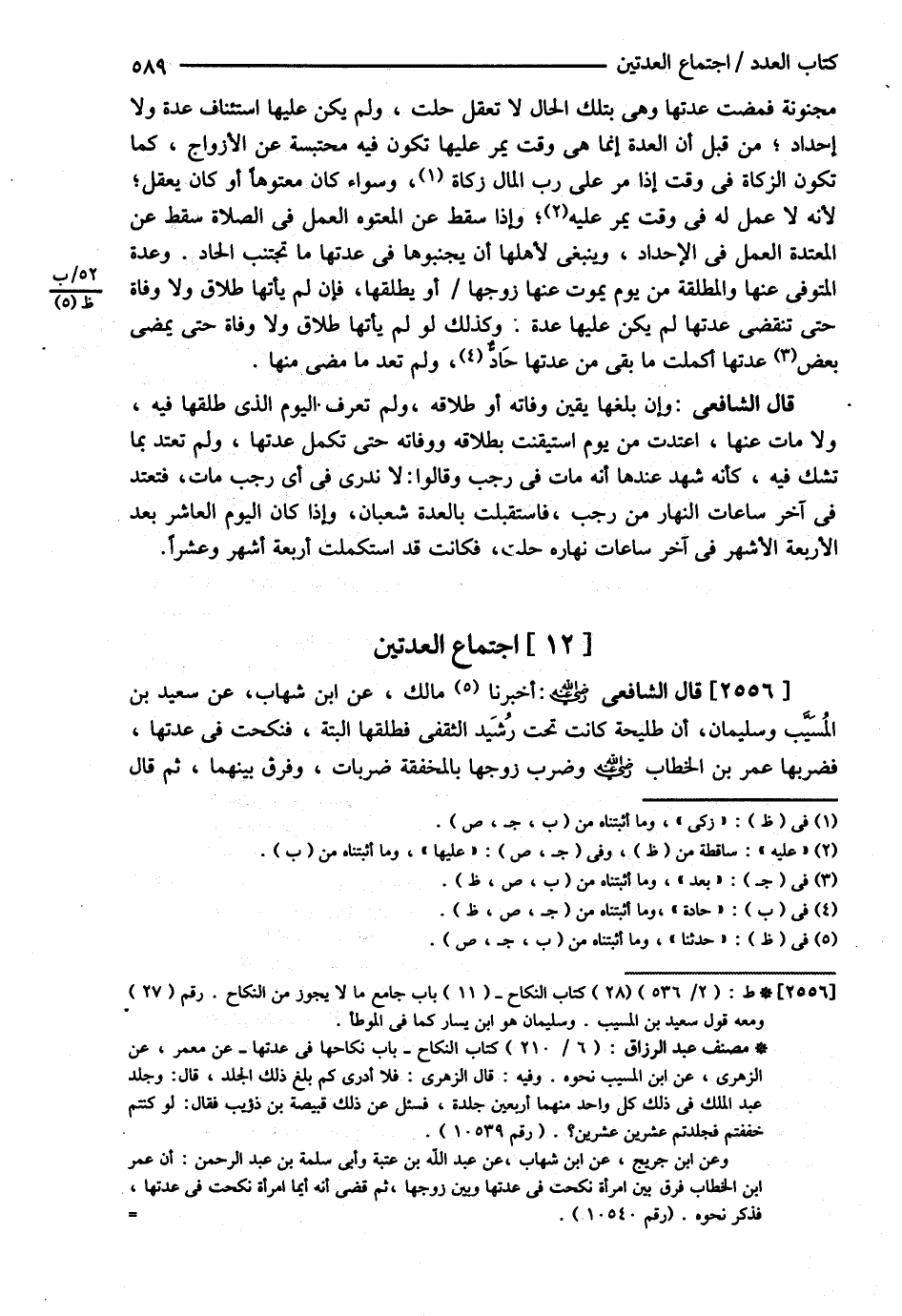 قَالَ الشَّافِعِيُّ : رحمه الله : أَخْبَرَنَا مَالِكٌ عَنْ ابْنِ شِهَابٍ عَنْ سَعِيدِ بْنِ الْمُسَيِّبِ وَسُلَيْمَانَ أَنَّ طُلَيْحَةَ كَانَتْ تَحْتَ رَشِيدٍ الثَّقَفِيِّ فَطَلَّقَهَا أَلْبَتَّةَ فَنَكَحَتْ فِي عِدَّتِهَا فَضَرَبَهَا عُمَرُ بْنُ الْخَطَّابِ رضي الله تعالى عنه وَضَرَبَ زَوْجَهَا بِالْمِخْفَقَةِ ضَرَبَاتٍ وَفَرَّقَ بَيْنَهُمَا " ثُمَّ قَالَ@