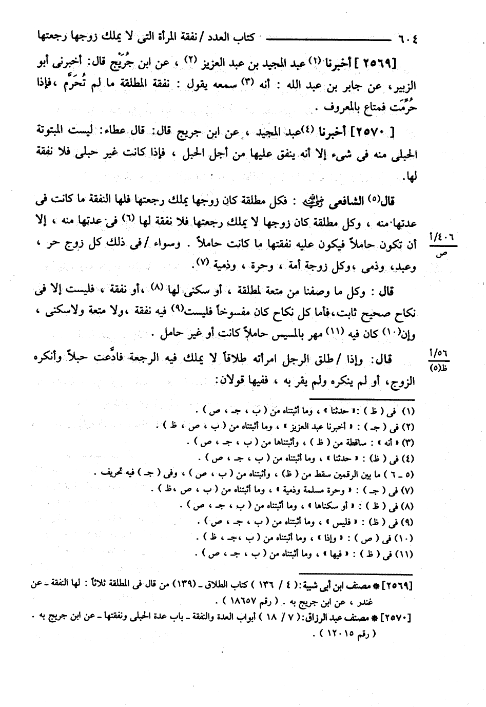 قَالَ الشَّافِعِيُّ : فَكُلُّ مُطَلَّقَةٍ كَانَ زَوْجُهَا يَمْلِكُ رَجْعَتَهَا فَلَهَا النَّفَقَةُ مَا كَانَتْ فِي عِدَّتِهَا مِنْهُ , وَكُلُّ مُطَلَّقَةٍ كَانَ زَوْجُهَا لاَ يَمْلِكُ رَجْعَتَهَا فَلاَ نَفَقَةَ لَهَا فِي عِدَّتِهَا مِنْهُ إلَّا أَنْ تَكُونَ حَامِلاً فَيَكُونَ عَلَيْهِ نَفَقَتُهَا مَا كَانَتْ حَامِلاً . وَسَوَاءٌ فِي ذَلِكَ كُلُّ زَوْجٍ حُرٍّ وَعَبْدٍ وَذِمِّيٍّ وَكُلُّ زَوْجَةٍ أَمَةٍ وَحُرَّةٍ وَذِمِّيَّةٍ . ( قَالَ ) وَكُلُّ مَا وَصَفْنَا مِنْ مُتْعَةٍ لِمُطَلَّقَةٍ أَوْ سُكْنَى لَهَا أَوْ نَفَقَةٍ فَلَيْسَتْ إلَّا فِي نِكَاحٍ صَحِيحٍ ثَابِتٍ . فَأَمَّا كُلُّ نِكَاحٍ كَانَ مَنْسُوخًا فَلَيْسَتْ فِيهِ نَفَقَةٌ وَلاَ مُتْعَةٌ وَلاَ سُكْنَى وَإِنْ كَانَ فِيهِ مَهْرٌ بِالْمَسِيسِ حَامِلاً كَانَتْ أَوْ غَيْرَ حَامِلٍ . ( قَالَ ) وَإِذَا طَلَّقَ الرَّجُلُ امْرَأَتَهُ طَلاَقًا لاَ يَمْلِكُ فِيهِ الرَّجْعَةَ فَأَدَعَّتْ حَبَلاً وَأَنْكَرَهُ الزَّوْجُ أَوْ لَمْ يُنْكِرْهُ وَلَمْ يُقِرَّ بِهِ فَفِيهَا قَوْلاَنِ .@
