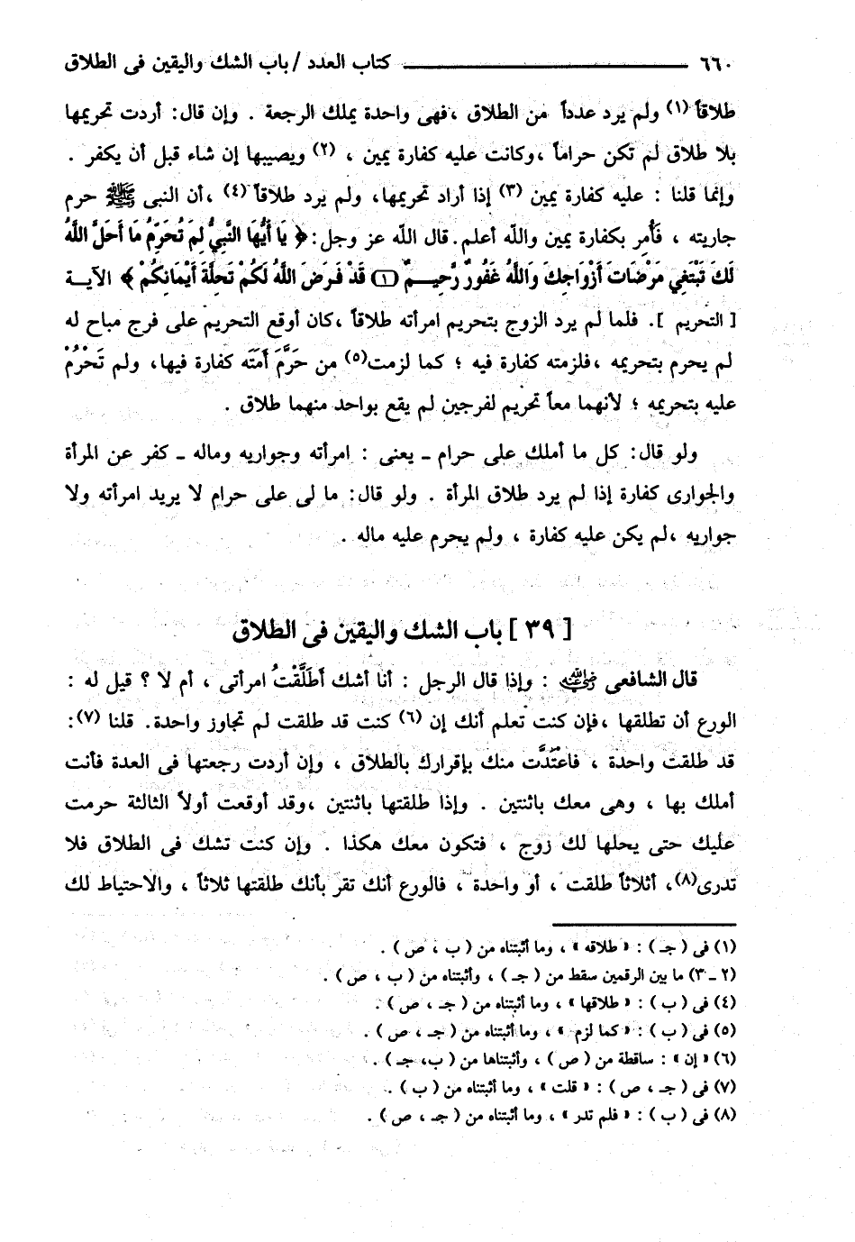 بَابُ الشَّكِّ وَالْيَقِينِ فِي الطَّلاَقِ