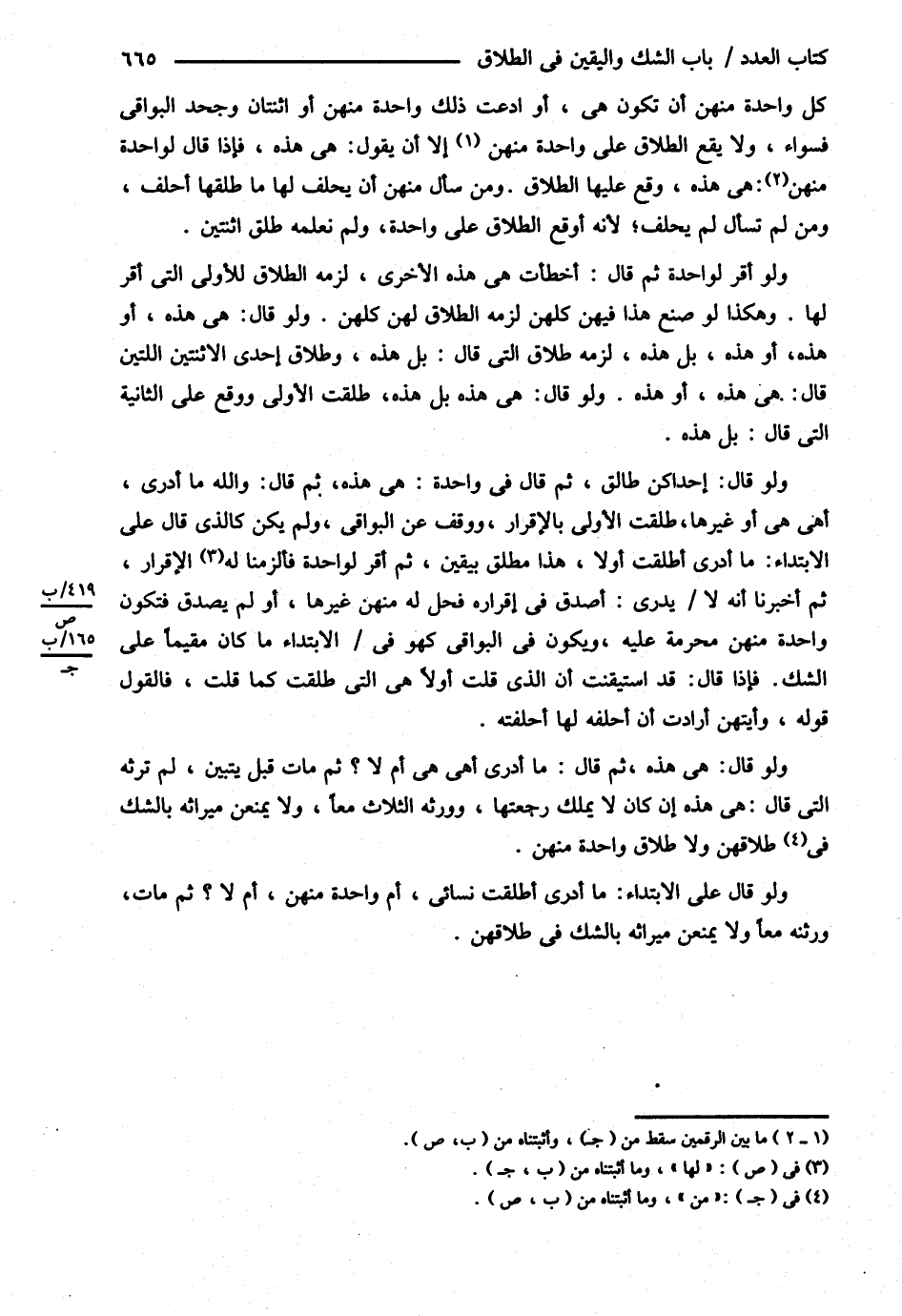 كُلُّ وَاحِدَةٍ مِنْهُنَّ أَنْ تَكُونَ هِيَ أَوْ ادَّعَتْ ذَلِكَ وَاحِدَةٌ مِنْهُنَّ أَوْ اثْنَتَانِ وَجَحَدَ الْبَوَاقِي فَسَوَاءٌ وَلاَ يَقَعُ الطَّلاَقُ عَلَى وَاحِدَةٍ مِنْهُنَّ إلَّا أَنْ يَقُولَ هِيَ هَذِهِ فَإِذَا قَالَ لِوَاحِدَةٍ مِنْهُنَّ هِيَ هَذِهِ وَقَعَ عَلَيْهَا الطَّلاَقُ , وَمَنْ سَأَلَ مِنْهُنَّ أَنْ يَحْلِفَ لَهَا مَا طَلَّقَهَا أُحْلِفَ وَمَنْ لَمْ تَسْأَلْ لَمْ يَحْلِفْ لِأَنَّهُ أَوْقَعَ الطَّلاَقَ عَلَى وَاحِدَةٍ وَلَمْ نَعْلَمْهُ طَلَّقَ اثْنَتَيْنِ , وَلَوْ أَقَرَّ لِوَاحِدَةٍ ثُمَّ قَالَ أَخْطَأْت هِيَ هَذِهِ الْأُخْرَى لَزِمَهُ الطَّلاَقُ لِلْأُولَى الَّتِي أَقَرَّ لَهَا وَهَكَذَا لَوْ صَنَعَ هَذَا فِيهِنَّ كُلِّهِنَّ لَزِمَهُ الطَّلاَقُ لَهُنَّ كُلِّهِنَّ , وَلَوْ قَالَ هِيَ هَذِهِ أَوْ هَذِهِ أَوْ هَذِهِ بَلْ هَذِهِ لَزِمَهُ طَلاَقُ الَّتِي قَالَ بَلْ هَذِهِ وَطَلاَقُ إحْدَى الِاثْنَتَيْنِ اللَّتَيْنِ قَالَ هِيَ هَذِهِ أَوْ هَذِهِ , وَلَوْ قَالَ هِيَ هَذِهِ بَلْ هَذِهِ طَلُقَتْ الْأُولَى وَوَقَعَ عَلَى الثَّانِيَةِ الَّتِي قَالَ بَلْ هَذِهِ , وَلَوْ قَالَ إحْدَاكُنَّ طَالِقٌ ثُمَّ قَالَ فِي وَاحِدَةٍ هِيَ هَذِهِ ثُمَّ قَالَ وَاَللَّهِ مَا أَدْرِي أَهِيَ هِيَ أَوْ غَيْرُهَا طَلُقَتْ الْأُولَى بِالْإِقْرَارِ وَوُقِفَ عَنْ الْبَوَاقِي وَلَمْ يَكُنْ كَاَلَّذِي قَالَ عَلَى الِابْتِدَاءِ مَا أَدْرِي أَطَلَّقْت أَوْ لاَ هَذَا مُطَلِّقٌ بِيَقِينٍ ثُمَّ أَقَرَّ لِوَاحِدَةٍ فَأَلْزَمْنَا لَهُ الْإِقْرَارَ ثُمَّ أَخْبَرْنَا أَنَّهُ لاَ يَدْرِي أَصَدَقَ فِي إقْرَارِهِ فَحَلَّ لَهُ مِنْهُنَّ غَيْرُهَا أَوْ لَمْ يَصْدُقْ فَتَكُونُ وَاحِدَةٌ مِنْهُنَّ مُحَرَّمَةً عَلَيْهِ وَيَكُونُ فِي الْبَوَاقِي كَهُوَ فِي الِابْتِدَاءِ مَا كَانَ مُقِيمًا عَلَى الشَّكِّ , فَإِذَا قَالَ قَدْ اسْتَيْقَنْت أَنَّ الَّذِي قُلْت أَوَّلاً هِيَ الَّتِي طَلَّقْت كَمَا قُلْت فَالْقَوْلُ قَوْلُهُ وَأَيَّتُهُنَّ أَرَادَتْ أَنْ أُحَلِّفَهُ لَهَا أَحَلَفْتَهُ , وَلَوْ قَالَ هِيَ هَذِهِ ثُمَّ قَالَ مَا أَدْرِي أَهِيَ هِيَ أَمْ لاَ ثُمَّ مَاتَ قَبْلَ أَنْ يَتَبَيَّنَ لَمْ تَرِثْهُ الَّتِي قَالَ هِيَ هَذِهِ إنْ كَانَ لاَ يَمْلِكُ رَجْعَتَهَا وَوَرِثَهُ الثَّلاَثُ مَعًا وَلاَ يَمْنَعْنَ مِيرَاثَهُ بِالشَّكِّ فِي طَلاَقِهِنَّ وَلاَ طَلاَقِ وَاحِدَةٍ مِنْهُنَّ وَلَوْ قَالَ عَلَى الِابْتِدَاءِ مَا أَدْرِي أَطَلَّقْت نِسَائِي أَمْ وَاحِدَةً مِنْهُنَّ أَمْ لاَ ؟ ثُمَّ مَاتَ وَرِثْنَهُ مَعًا وَلاَ يَمْنَعْنَ مِيرَاثَهُ بِالشَّكِّ فِي طَلاَقِهِنَّ .@