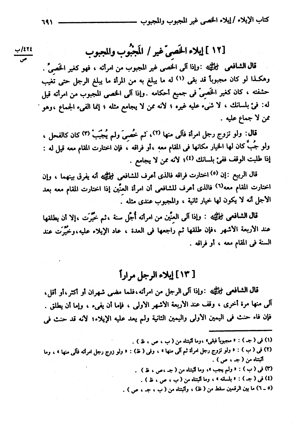 قَالَ الشَّافِعِيُّ : رحمه الله : وَإِذَا آلَى الْخَصِيُّ غَيْرُ الْمَجْبُوبِ مَعَ امْرَأَتِهِ فَهُوَ كَغَيْرِ الْخَصِيِّ وَهَكَذَا لَوْ كَانَ مَجْبُوبًا قَدْ بَقِيَ لَهُ مَا يَبْلُغُ بِهِ مِنْ الْمَرْأَةِ مَا يَبْلُغُ الرَّجُلُ حَتَّى تَغِيبَ حَشَفَتُهُ كَانَ كَغَيْرِ الْخَصِيِّ فِي جَمِيعِ أَحْكَامِهِ . وَإِذَا آلَى الْخَصِيُّ الْمَجْبُوبُ مِنْ امْرَأَتِهِ قِيلَ لَهُ فِئْ بِلِسَانِك لاَ شَيْءَ عَلَيْهِ غَيْرُهُ لِأَنَّهُ مِمَّنْ لاَ يُجَامِعُ مِثْلُهُ وَإِنَّمَا الْفَيْءُ الْجِمَاعُ وَهُوَ مِمَّنْ لاَ جِمَاعَ عَلَيْهِ ( قَالَ ) وَلَوْ تَزَوَّجَ رَجُلٌ امْرَأَةً ثُمَّ آلَى مِنْهَا ثُمَّ خُصِيَ وَلَمْ يُجَبَّ كَانَ كَالْفَحْلِ وَلَوْ جُبَّ كَانَ لَهَا الْخِيَارُ مَكَانَهَا فِي الْمَقَامِ مَعَهُ أَوْ فِرَاقِهِ فَإِنْ اخْتَارَتْ الْمَقَامَ مَعَهُ قِيلَ لَهُ إذَا طَلَبَتْ الْوَقْفَ ففء بِلِسَانِك لِأَنَّهُ مِمَّنْ لاَ يُجَامِعُ ( قَالَ الرَّبِيعُ ) إنْ اخْتَارَتْ فِرَاقَهُ فَاَلَّذِي أَعْرِفُ لِلشَّافِعِيِّ أَنَّهُ يُفَرَّقُ بَيْنَهُمَا وَإِنْ اخْتَارَتْ الْمَقَامَ مَعَهُ فَاَلَّذِي أَعْرِفُ لِلشَّافِعِيِّ أَنَّ امْرَأَةَ الْعِنِّينِ إذَا اخْتَارَتْ الْمَقَامَ مَعَهُ بَعْدَ الْأَجَلِ أَنَّهُ لاَ يَكُونُ لَهَا خِيَارٌ ثَانِيَةً وَالْمَجْبُوبُ عِنْدِي مِثْلُهُ