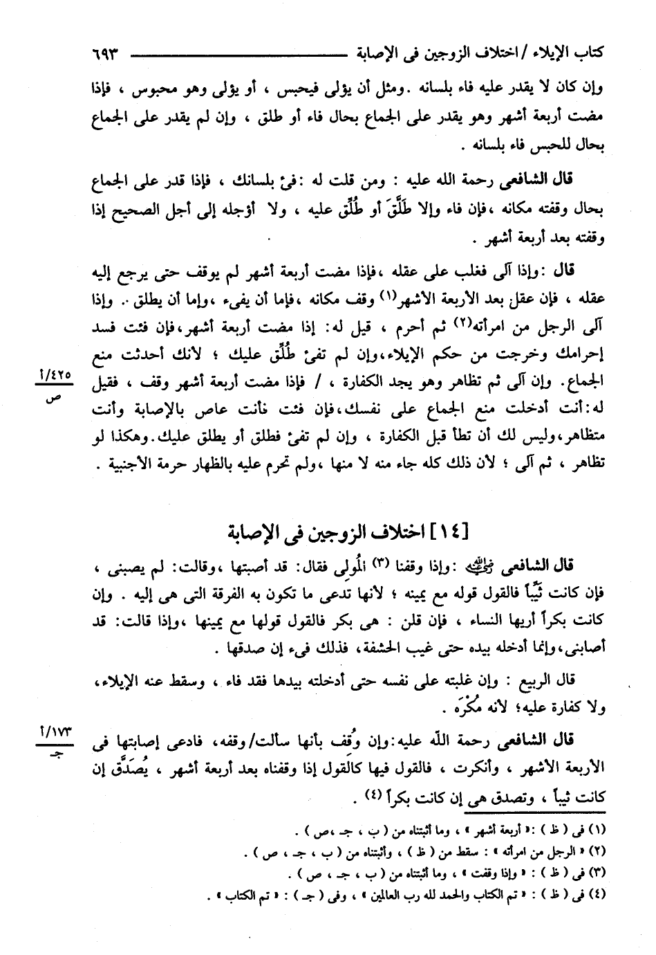 قَالَ الشَّافِعِيُّ : رحمه الله : وَمَنْ قُلْت لَهُ فِئْ بِلِسَانِك فَإِذَا قَدَرَ عَلَى الْجِمَاعِ بِحَالٍ وَقَفْته مَكَانَهُ فَإِنْ فَاءَ وَإِلَّا طَلَّقَ أَوْ طُلِّقَ عَلَيْهِ وَلاَ أُؤَجِّلُهُ إلَى أَجَلِ الصَّحِيحِ إذَا وَقَفْته بَعْدَ أَرْبَعَةِ أَشْهُرٍ ( قَالَ ) وَإِذَا آلَى فَغُلِبَ عَلَى عَقْلِهِ فَإِذَا مَضَتْ أَرْبَعَةُ أَشْهُرٍ لَمْ يُوقَفْ حَتَّى يَرْجِعَ إلَيْهِ عَقْلُهُ فَإِنْ عَقَلَ بَعْدَ الْأَرْبَعَةِ الْأَشْهُرِ وُقِفَ مَكَانَهُ فَإِمَّا أَنْ يَفِيءَ وَإِمَّا أَنْ يُطَلِّقَ , وَإِذَا آلَى الرَّجُلُ مِنْ امْرَأَتِهِ ثُمَّ أَحْرَمَ قِيلَ لَهُ إذَا مَضَتْ أَرْبَعَةُ أَشْهُرٍ فَإِنْ فِئْت فَسَدَ إحْرَامُك وَخَرَجْت مِنْ حُكْمِ الْإِيلاَءِ وَإِنْ لَمْ تَفِئْ طُلِّقَ عَلَيْك لِأَنَّك أَحْدَثْت مَنْعَ الْجِمَاعِ وَإِنْ آلَى ثُمَّ تَظَاهَرَ وَهُوَ يَجِدُ الْكَفَّارَةَ فَإِذَا مَضَتْ أَرْبَعَةُ أَشْهُرٍ وُقِفَ فَقِيلَ لَهُ أَنْتَ أَدْخَلْت مَنْعَ الْجِمَاعِ عَلَى نَفْسِك فَإِنْ فِئْت فَأَنْتَ عَاصٍ بِالْإِصَابَةِ وَأَنْتَ مُتَظَاهِرٌ وَلَيْسَ لَك أَنْ تَطَأَ قَبْلَ الْكَفَّارَةِ وَإِنْ لَمْ تَفِئْ فَطَلِّقْ أَوْ يُطَلَّقُ عَلَيْك , وَهَكَذَا لَوْ تَظَاهَرَ ثُمَّ آلَى لِأَنَّ ذَلِكَ كُلَّهُ جَاءَ مِنْهُ لاَ مِنْهَا وَلَمْ تَحْرُمْ عَلَيْهِ بِالظِّهَارِ حُرْمَةَ الْأَجْنَبِيَّةِ .
