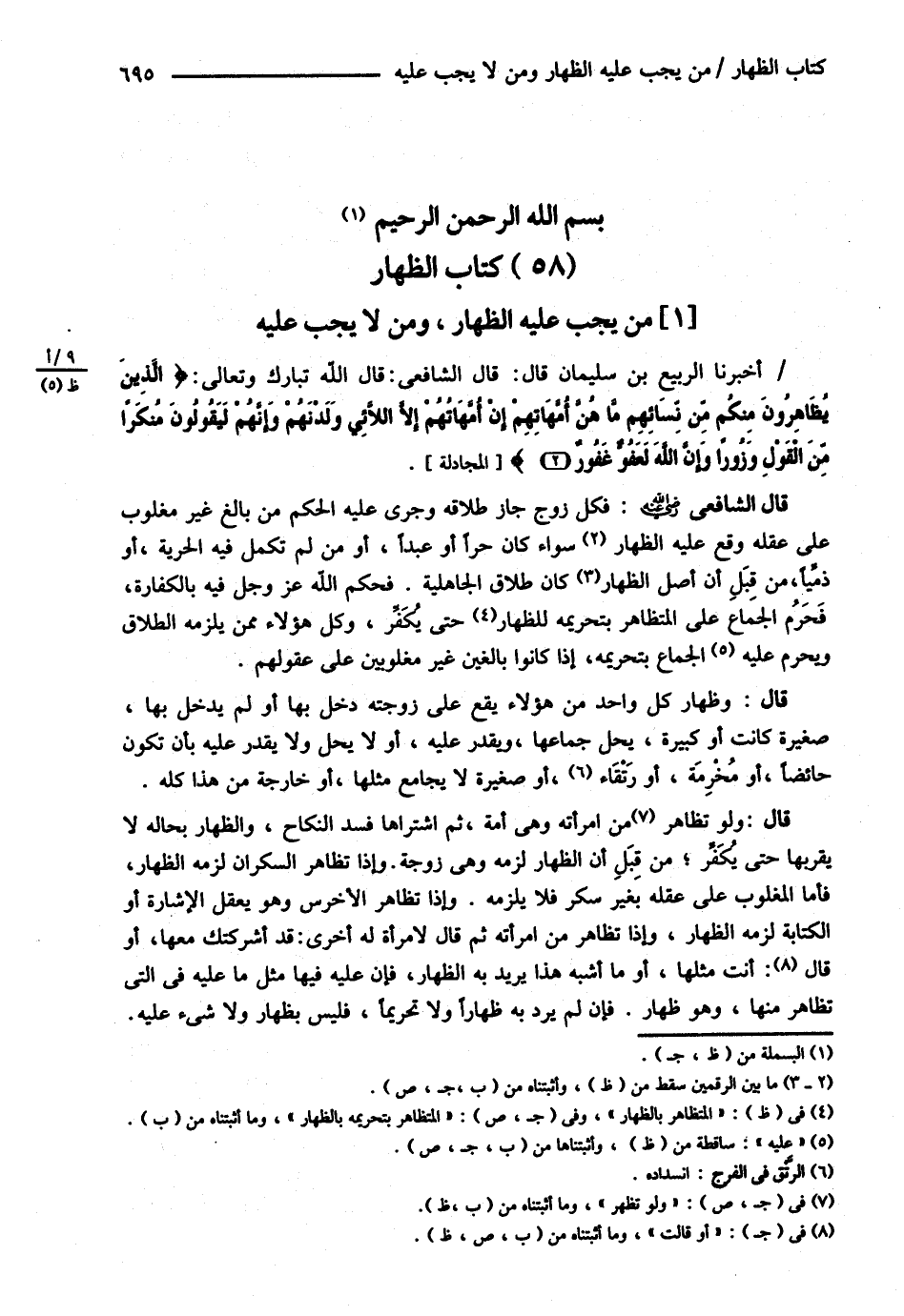 مَنْ يَجِبُ عَلَيْهِ الظِّهَارُ وَمَنْ لاَ يَجِبُ عَلَيْهِ ( أَخْبَرَنَا الرَّبِيعُ بْنُ سُلَيْمَانَ ) قَالَ