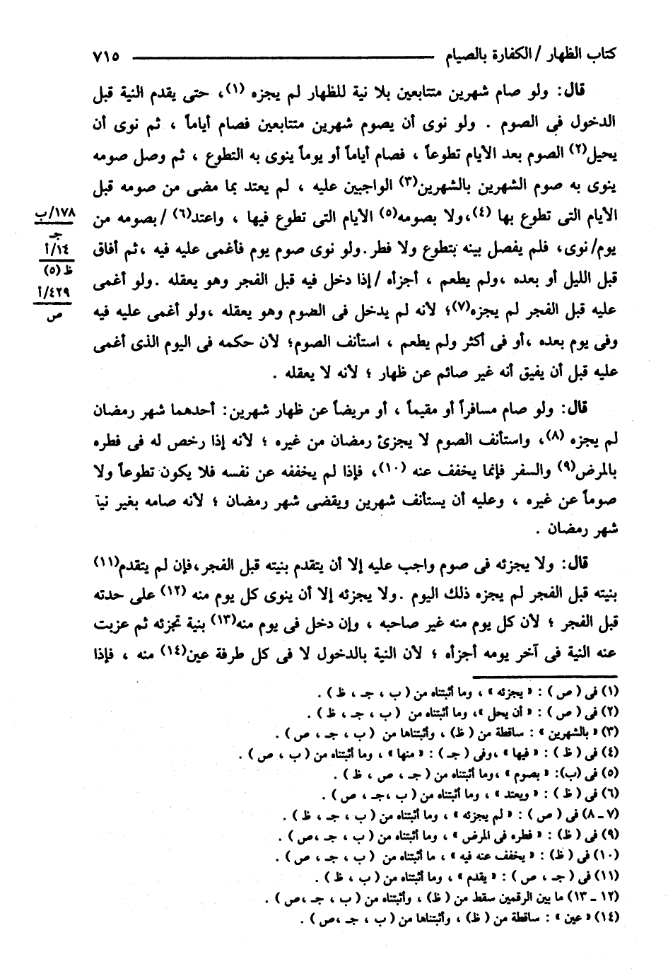 ( قَالَ ) وَلَوْ صَامَ شَهْرَيْنِ مُتَتَابِعَيْنِ بِلاَ نِيَّةٍ لِلظِّهَارِ لَمْ يُجْزِهِ حَتَّى يُقَدِّمَ النِّيَّةَ قَبْلَ الدُّخُولِ فِي الصَّوْمِ وَلَوْ نَوَى أَنْ يَصُومَ شَهْرَيْنِ مُتَتَابِعَيْنِ فَصَامَ أَيَّامًا ثُمَّ نَوَى أَنْ يُحِيلَ الصَّوْمَ بَعْدَ الْأَيَّامِ تَطَوُّعًا فَصَامَ أَيَّامًا أَوْ يَوْمًا يَنْوِي بِهِ التَّطَوُّعَ , ثُمَّ وَصَلَ صَوْمَهُ يَنْوِي بِهِ صَوْمَ الشَّهْرَيْنِ بِالشَّهْرَيْنِ الْوَاجِبَيْنِ عَلَيْهِ لَمْ يَعْتَدَّ بِمَا مَضَى مِنْ صَوْمِهِ قَبْلَ الْأَيَّامِ الَّتِي تَطَوَّعَ بِهَا وَلاَ بِصَوْمِ الْأَيَّامِ الَّتِي تَطَوَّعَ فِيهَا وَاعْتَدَّ بِصَوْمِهِ مِنْ يَوْمِ نَوَى فَلَمْ يَفْصِلْ بَيْنَهُ بِتَطَوُّعٍ وَلاَ فِطْرٍ , وَلَوْ نَوَى صَوْمَ يَوْمٍ فَأُغْمِيَ عَلَيْهِ فِيهِ ثُمَّ أَفَاقَ قَبْلَ اللَّيْلِ أَوْ بَعْدَهُ وَلَمْ يُطْعِمْ أَجْزَأَهُ إذَا دَخَلَ فِيهِ قَبْلَ الْفَجْرِ وَهُوَ يَعْقِلُهُ , وَلَوْ أُغْمِيَ عَلَيْهِ قَبْلَ الْفَجْرِ لَمْ يُجْزِهِ لِأَنَّهُ لَمْ يَدْخُلْ فِي الصَّوْمِ وَهُوَ يَعْقِلُهُ وَلَوْ أُغْمِيَ عَلَيْهِ فِيهِ وَفِي يَوْمٍ بَعْدَهُ أَوْ فِي أَكْثَرَ وَلَمْ يُطْعِمْ اسْتَأْنَفَ الصَّوْمَ لِأَنَّ حُكْمَهُ فِي الْيَوْمِ الَّذِي أُغْمِيَ عَلَيْهِ قَبْلَ أَنْ يُفِيقَ أَنَّهُ غَيْرُ صَائِمٍ عَنْ ظِهَارٍ لِأَنَّهُ لاَ يَعْقِلُهُ .