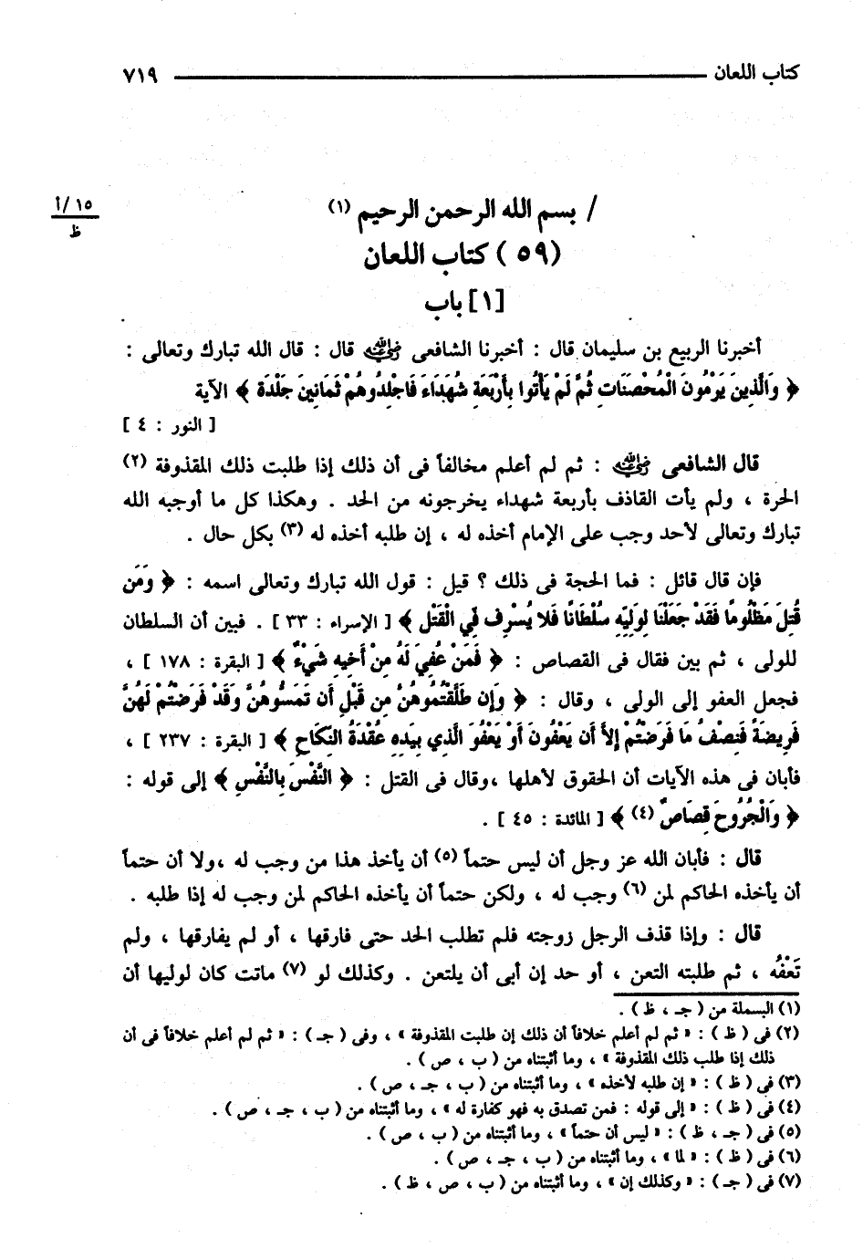 (أَخْبَرَنَا الرَّبِيعُ بْنُ سُلَيْمَانَ) قَالَ (أَخْبَرَنَا الشَّافِعِيُّ) قَالَ: قَالَ اللَّهُ تَعَالَى {وَاَلَّذِينَ يَرْمُونَ الْمُحْصَنَاتِ ثُمَّ لَمْ يَأْتُوا بِأَرْبَعَةِ شُهَدَاءَ فَاجْلِدُوهُمْ ثَمَانِينَ جَلْدَةً ? الآيَةَ.