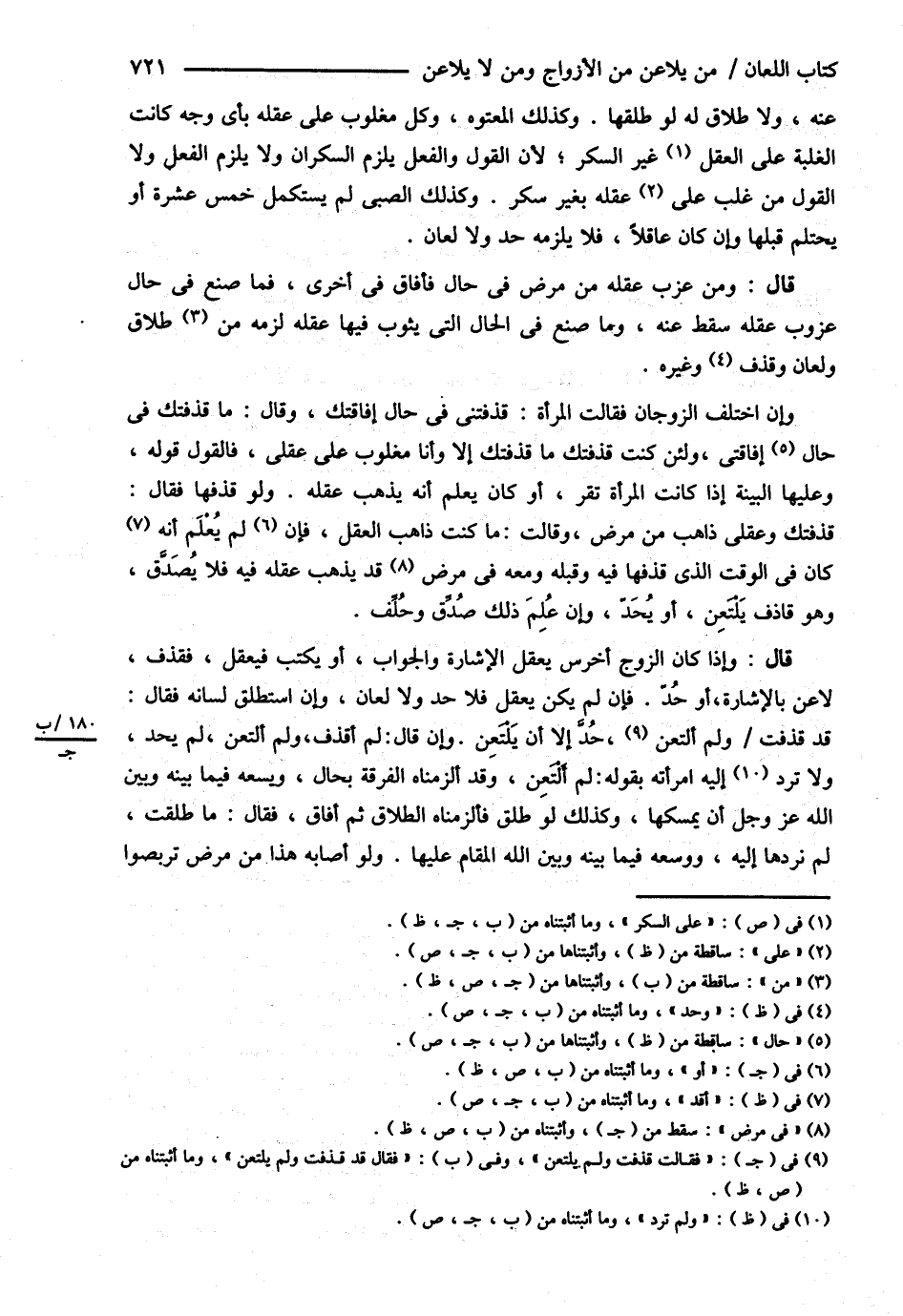 عَنْهُ وَلاَ طَلاَقَ لَهُ لَوْ طَلَّقَهَا , وَكَذَلِكَ الْمَعْتُوهُ وَكُلُّ مَغْلُوبٍ عَلَى عَقْلِهِ بِأَيِّ وَجْهٍ كَانَتْ الْغَلَبَةُ عَلَى الْعَقْلِ غَيْرَ السُّكْرِ لِأَنَّ الْقَوْلَ وَالْفِعْلَ يَلْزَمُ السَّكْرَانَ وَلاَ يَلْزَمُ الْفِعْلُ وَلاَ الْقَوْلُ مَنْ غُلِبَ عَلَى عَقْلِهِ بِغَيْرِ سُكْرٍ , وَكَذَلِكَ الصَّبِيُّ لَمْ يَسْتَكْمِلْ خَمْسَ عَشَرَةَ أَوْ يَحْتَلِمْ قَبْلَهَا وَإِنْ كَانَ عَاقِلاً فَلاَ يَلْزَمُهُ حَدٌّ وَلاَ لِعَانٌ ( قَالَ ) وَمَنْ عَزَبَ عَقْلُهُ مِنْ مَرَضٍ فِي حَالٍ فَأَفَاقَ فِي أُخْرَى فَمَا صَنَعَ فِي حَالِ عُزُوبِ عَقْلِهِ سَقَطَ عَنْهُ وَمَا صَنَعَ فِي الْحَالِ الَّتِي يَثُوبُ فِيهَا عَقْلُهُ لَزِمَهُ طَلاَقٌ وَلِعَانٌ وَقَذْفٌ وَغَيْرُهُ . وَإِنْ اخْتَلَفَ الزَّوْجَانِ فَقَالَتْ الْمَرْأَةُ قَذَفْتَنِي فِي حَالِ إفَاقَتِك وَقَالَ مَا قَذَفْتُك فِي حَالِ إفَاقَتِي وَلَئِنْ كُنْت قَذَفْتُك مَا قَذَفْتُك إلَّا وَأَنَا مَغْلُوبٌ عَلَى عَقْلِي فَالْقَوْلُ قَوْلُهُ وَعَلَيْهَا الْبَيِّنَةُ إذَا كَانَتْ الْمَرْأَةُ تُقِرُّ , أَوْ كَانَ يُعْلَمُ أَنَّهُ يَذْهَبُ عَقْلُهُ , وَلَوْ قَذَفَهَا فَقَالَ قَذَفْتُك وَعَقْلِي ذَاهِبٌ مِنْ مَرَضٍ وَقَالَتْ مَا كُنْت ذَاهِبَ الْعَقْلِ فَإِنْ لَمْ يُعْلَمْ أَنَّهُ كَانَ فِي الْوَقْتِ الَّذِي قَذَفَهَا فِيهِ وَقَبْلَهُ وَمَعَهُ فِي مَرَضٍ قَدْ يَذْهَبُ عَقْلُهُ فِيهِ فَلاَ يُصَدِّقُ وَهُوَ قَاذِفٌ يَلْتَعِنُ أَوْ يُحَدُّ وَإِنْ عُلِمَ ذَلِكَ صُدِّقَ وَحَلَفَ ( قَالَ ) وَإِذَا كَانَ الزَّوْجُ أَخْرَسَ يَعْقِلُ الْإِشَارَةَ وَالْجَوَابَ أَوْ يَكْتُبُ فَيَعْقِلُ فَقَذَفَ لاَعَنَ بِالْإِشَارَةِ أَوْ حُدَّ فَإِنْ لَمْ يَعْقِلْ فَلاَ حَدَّ وَلاَ لِعَانَ وَإِنْ اسْتَطْلَقَ لِسَانَهُ فَقَالَ قَدْ قَذَفْت وَلَمْ يَلْتَعِنْ حُدَّ إلَّا أَنْ يَلْتَعِنَ , وَإِنْ قَالَ لَمْ أَقْذِفْ وَلَمْ أَلْتَعِنْ لَمْ يُحَدَّ وَلاَ تُرَدُّ إلَيْهِ امْرَأَتُهُ بِقَوْلِهِ لَمْ أَلْتَعِنْ وَقَدْ أَلْزَمْنَاهُ الْفُرْقَةَ بِحَالٍ وَيَسَعُهُ فِيمَا بَيْنَهُ وَبَيْنَ اللَّهِ تَعَالَى أَنْ يُمْسِكَهَا , وَكَذَلِكَ لَوْ طَلَّقَ فَأَلْزَمْنَاهُ الطَّلاَقَ ثُمَّ أَفَاقَ فَقَالَ مَا طَلَّقْت لَمْ نَرُدَّهَا إلَيْهِ وَوَسِعَهُ فِيمَا بَيْنَهُ وَبَيْنَ اللَّهِ تَعَالَى الْمَقَامُ عَلَيْهَا , وَلَوْ أَصَابَهُ هَذَا مِنْ مَرَضٍ تَرَبَّصُوا @