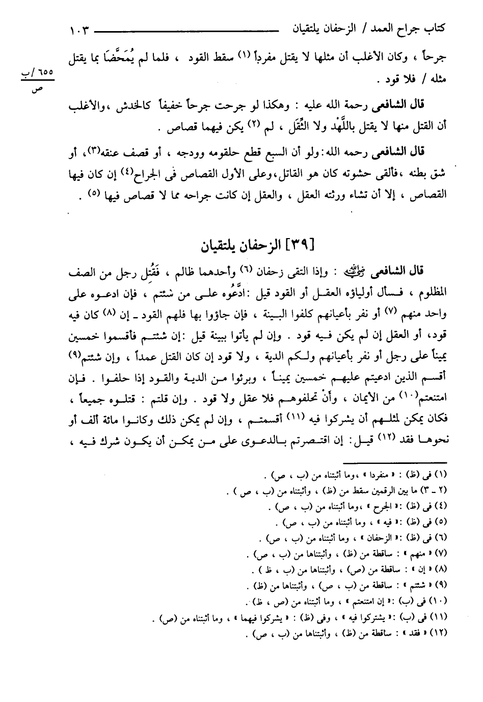 قَالَ الشَّافِعِيُّ : رحمه الله تعالى : وَإِذَا الْتَقَى زَحْفَانِ وَأَحَدُهُمَا ظَالِمٌ , فَقُتِلَ رَجُلٌ مِنْ الصَّفِّ الْمَظْلُومِ فَسَأَلَ أَوْلِيَاؤُهُ الْعَقْلَ , أَوْ الْقَوَدَ قِيلَ : ادَّعُوهُ عَلَى مَنْ شِئْتُمْ فَإِنْ ادَّعَوْهُ عَلَى وَاحِدٍ مِنْهُمْ أَوْ نَفَرٍ بِأَعْيَانِهِمْ كُلِّفُوا الْبَيِّنَةَ فَإِنْ جَاءُوا بِهَا فَلَهُمْ الْقَوَدُ إنْ كَانَ فِيهِ قَوَدٌ أَوْ الْعَقْلُ إنْ لَمْ يَكُنْ فِيهِ قَوَدٌ , وَإِنْ لَمْ يَأْتُوا بِبَيِّنَةٍ قِيلَ : إنْ شِئْتُمْ فَأَقْسِمُوا خَمْسِينَ يَمِينًا عَلَى رَجُلٍ أَوْ نَفَرٍ بِأَعْيَانِهِمْ وَلَكُمْ الدِّيَةُ وَلاَ قَوَدَ إنْ كَانَ الْقَتْلُ عَمْدًا , وَإِنْ أَقْسَمَ الَّذِينَ ادَّعَيْتُمْ عَلَيْهِمْ خَمْسِينَ يَمِينًا بَرِئُوا مِنْ الدِّيَةِ وَالْقَوَدِ إذَا حَلَفُوا إنْ امْتَنَعْتُمْ مِنْ الْإِيمَانِ وَإِنْ تُحَلِّفُوهُمْ فَلاَ عَقْلَ وَلاَ قَوَدَ وَإِنْ قُلْتُمْ قَتَلُوهُ جَمِيعًا فَكَانَ يُمْكِنُ لِمِثْلِهِمْ أَنْ يَشْتَرِكُوا فِيهِ أَقْسَمْتُمْ وَإِنْ لَمْ يُمْكِنْ ذَلِكَ وَكَانُوا مِائَةَ أَلْفٍ أَوْ نَحْوَهَا فَقَدْ قِيلَ : إنْ اقْتَصَرْتُمْ بِالدَّعْوَى عَلَى مَنْ يُمْكِنُ أَنْ يَكُونَ شَرِكَ فِيهِ@