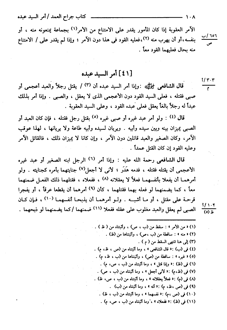 الْآمِرِ الْعُقُوبَةُ إذَا كَانَ الْمَأْمُورُ يَقْدِرُ عَلَى الِامْتِنَاعِ بِجَمَاعَةٍ يَمْنَعُونَهُ مِنْهُ أَوْ بِنَفْسِهِ أَوْ أَنْ يَهْرُبَ فَعَلَيْهِ الْقَوَدُ فِي هَذَا دُونَ الْآمِرِ وَإِذَا لَمْ يَقْدِرْ عَلَى الِامْتِنَاعِ مِنْهُ بِحَالٍ فَعَلَيْهِمَا الْقَوَدُ مَعًا .