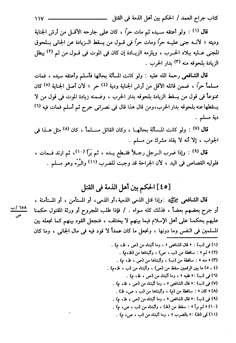 قَالَ الشَّافِعِيُّ : وَلَوْ كَانَتْ الْمَسْأَلَةُ بِحَالِهَا وَكَانَ الْقَاتِلُ مُسْلِمًا كَانَ مِثْلَ هَذَا فِي الْجَوَابِ إلَّا أَنَّهُ لاَ يُقَادُ مُشْرِكٌ مِنْ مُسْلِمٍ .