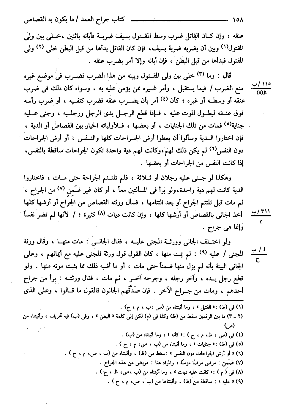 قَالَ الشَّافِعِيُّ : وَمَا خُلِّيَ بَيْنَ وَلِيِّ الْمَقْتُولِ وَبَيْنَهُ مِنْ هَذَا الضَّرْبِ فَضَرَبَ فِي مَوْضِعٍ غَيْرِهِ مُنِعَ الضَّرْبَ فِيمَا يَسْتَقْبِلُ وَأُمِرَ غَيْرُهُ مِمَّنْ يُؤْمَنُ عَلَيْهِ بِهِ وَسَوَاءٌ كَانَ ذَلِكَ فِي ضَرْبِ عُنُقِهِ أَوْ وَسَطِهِ أَوْ غَيْرِهِ كَأَنْ أُمِرَ بِأَنْ يَضْرِبَ عُنُقَهُ فَضَرَبَ كَتِفَيْهِ أَوْ ضَرَبَ رَأْسَهُ فَوْقَ عُنُقِهِ لِيَطُولَ الْمَوْتُ عَلَيْهِ , فَإِذَا قَطَعَ الرَّجُلُ يَدَيْ الرَّجُلِ وَرِجْلَيْهِ وَجَنَى عَلَيْهِ جِنَايَةً فَمَاتَ مِنْ تِلْكَ الْجِنَايَاتِ أَوْ بَعْضِهَا فَلِأَوْلِيَائِهِ الْخِيَارُ بَيْنَ الْقِصَاصِ أَوْ الدِّيَةِ فَإِنْ اخْتَارُوا الدِّيَةَ وَسَأَلُوا أَنْ يُعْطُوا أَرْشَ الْجِرَاحَاتِ كُلِّهَا وَالنَّفْسِ أَوْ أَرْشَ الْجِرَاحَاتِ دُونَ النَّفْسِ لَمْ يَكُنْ ذَلِكَ لَهُمْ وَكَانَتْ لَهُمْ دِيَةٌ وَاحِدَةٌ تَكُونُ الْجِرَاحَاتُ سَاقِطَةٌ بِالنَّفْسِ إذَا كَانَتْ النَّفْسُ مِنْ الْجِرَاحَاتِ أَوْ بَعْضِهَا . وَهَكَذَا لَوْ جَنَى عَلَيْهِ رَجُلاَنِ أَوْ ثَلاَثَةٌ فَلَمْ تَلْتَئِمْ الْجِرَاحَةُ حَتَّى مَاتَ فَاخْتَارُوا الدِّيَةَ كَانَتْ لَهُمْ دِيَةٌ وَاحِدَةٌ , وَلَوْ بَرِئَ فِي الْمَسْأَلَتَيْنِ مَعًا أَوْ كَانَ غَيْرَ ضُمِّنَ مِنْ الْجِرَاحِ , ثُمَّ مَاتَ قَبْلَ أَنْ تَلْتَئِمَ الْجِرَاحُ أَوْ بَعْدَ الْتِئَامِهَا فَسَأَلَ وَرَثَتُهُ الْقِصَاصَ مِنْ الْجِرَاحِ أَوْ أَرْشَهَا كُلَّهَا أُخِذَ الْجَانِي بِالْقِصَاصِ أَوْ أَرْشِهَا كُلِّهَا وَإِنْ كَانَتْ دِيَاتٌ كَثِيرَةٌ ; لِأَنَّهَا لَمْ تَصِرْ نَفْسًا وَإِنَّمَا هِيَ جِرَاحٌ وَلَوْ اخْتَلَفَ الْجَانِي وَوَرَثَةَ الْمَجْنِيِّ عَلَيْهِ فَقَالَ : الْجَانِي مَاتَ مِنْهَا وَقَالَ وَرَثَةُ الْمَجْنِيِّ عَلَيْهِ : لَمْ يَمُتْ مِنْهَا كَانَ الْقَوْلُ قَوْلَ وَرَثَةِ الْمَجْنِيِّ عَلَيْهِ مَعَ أَيْمَانِهِمْ وَعَلَى الْجَانِي الْبَيِّنَةُ بِأَنَّهُ لَمْ يَزُلْ مِنْهَا ضَمِنًا حَتَّى مَاتَ أَوْ مَا أَشْبَهَ ذَلِكَ مِمَّا يَثْبُتُ مَوْتُهُ مِنْهَا وَلَوْ قَطَعَ رَجُلٌ يَدَهُ وَآخَرُ رِجْلَهُ وَجَرَحَهُ آخَرُ , ثُمَّ مَاتَ فَقَالَ وَرَثَتُهُ : بَرِئَ مِنْ جِرَاحِ أَحَدِهِمْ وَمَاتَ مِنْ جِرَاحِ الْآخَرِ فَإِنْ صَدَّقَهُمْ الْجَانُونَ فَالْقَوْلُ مَا قَالُوا وَعَلَى الَّذِي @