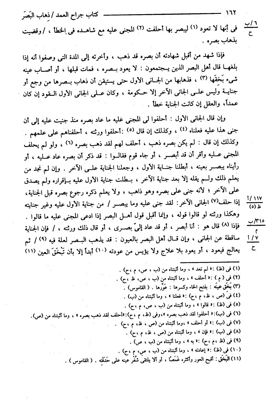 فِي أَنَّهَا لاَ تَعُودُ لِيُبْصِرَ بِهَا أَحَلَفْت الْمَجْنِيَّ عَلَيْهِ مَعَ شَاهِدِهِ فِي الْخَطَأِ وَقَضَيْت بِذَهَابِ بَصَرِهِ فَإِذَا شَهِدَ مَنْ أَقْبَلُ شَهَادَتَهُ أَنَّ بَصَرَهُ قَدْ ذَهَبَ وَأَخَّرْته إلَى الْمُدَّةِ الَّتِي وَصَفُوا أَنَّهُ إذَا بَلَغَهَا قَالَ أَهْلُ الْبَصَرِ الَّذِينَ يَجْتَمِعُونَ لاَ يَعُودُ بَصَرُهُ فَمَاتَ قَبْلَهَا أَوْ أَصَابَ عَيْنَهُ شَيْءٌ بَخَقَهَا فَذَهَابُهَا مِنْ الْجَانِي الْأَوَّلِ حَتَّى يَسْتَيْقِنَ أَنَّ ذَهَابَ بَصَرِهَا مِنْ وَجَعٍ أَوْ جِنَايَةٍ وَلَيْسَ عَلَى الْجَانِي الْآخَرِ إلَّا حُكُومَةٌ : وَكَانَ عَلَى الْجَانِي الْأَوَّلِ الْقَوَدُ إنْ كَانَ عَمْدًا وَالْعَقْلُ إنْ كَانَتْ الْجِنَايَةُ خَطَأً . وَإِنْ قَالَ الْجَانِي الْأَوَّلُ أَحْلِفُوا لِي الْمَجْنِيَّ عَلَيْهِ مَا عَادَ بَصَرُهُ مُنْذُ جَنَيْت عَلَيْهِ إلَى أَنْ جَنَى هَذَا عَلَيْهِ فَعَلْنَاهُ . وَكَذَلِكَ إنْ قَالَ أَحْلِفُوا وَرَثَتَهُ أَحَلَفْنَاهُمْ عَلَى عِلْمِهِمْ , وَكَذَلِكَ إنْ قَالَ لَمْ يَكُنْ بَصَرُهُ ذَهَبَ , أُحْلِفُوا لَقَدْ ذَهَبَ بَصَرُهُ وَلَوْ لَمْ يَحْلِفْ الْمَجْنِيُّ عَلَيْهِ وَأَقَرَّ أَنْ قَدْ أَبْصَرَ أَوْ جَاءَ قَوْمٌ فَقَالُوا قَدْ ذَكَرَ أَنَّ بَصَرَهُ عَادَ عَلَيْهِ أَوْ رَأَيْنَاهُ يُبْصِرُ بِعَيْنِهِ أَبْطَلْنَا جِنَايَةَ الْأَوَّلِ وَجَعَلْنَا الْجِنَايَةَ عَلَى الْآخَرِ وَإِنْ لَمْ نَجِدْ مَنْ يَعْلَمُ ذَلِكَ وَلَمْ يَقُلْهُ إلَّا بَعْدَ جِنَايَةِ الْآخَرِ بَطَلَتْ جِنَايَةُ الْأَوَّلِ عَلَيْهِ بِإِقْرَارِهِ وَلَمْ يُصَدَّقْ عَلَى الْآخَرِ ; لِأَنَّهُ جَنَى عَلَى بَصَرِهِ وَهُوَ ذَاهِبٌ وَلاَ يَعْلَمُ ذِكْرُهُ رُجُوعَ بَصَرِهِ قَبْلَ الْجِنَايَةِ . أَوْ أُحْلِفَ الْجَانِي الْآخَرُ لَقَدْ جَنَى عَلَيْهِ وَمَا يُبْصِرُ مِنْ جِنَايَةِ الْأَوَّلِ عَلَيْهِ وَغَيْرِ جِنَايَتِهِ . وَهَكَذَا وَرَثَتُهُ لَوْ قَالُوا قَوْلَهُ وَإِنَّمَا أَقْبَلُ قَوْلَ أَهْلِ الْبَصَرِ إذَا ادَّعَى الْمَجْنِيُّ عَلَيْهِ مَا قَالُوا . فَإِنْ قَالَ هُوَ : أَنَا أُبْصِرُ أَوْ قَدْ عَادَ إلَيَّ بَصَرِي أَوْ قَالَ ذَلِكَ وَرَثَتُهُ فَإِنَّ الْجِنَايَةَ سَاقِطَةٌ عَنْ الْجَانِي , وَإِنْ قَالَ أَهْلُ الْبَصَرِ بِالْعُيُونِ قَدْ يَذْهَبُ الْبَصَرُ لِعِلَّةٍ فِيهِ , ثُمَّ يُعَالَجُ فَيَعُودُ أَوْ يَعُودُ بِلاَ عِلاَجٍ وَلاَ يُؤَيَّسُ مِنْ عَوْدَتِهِ أَبَدًا إلَّا بِأَنْ تُبْخَقَ الْعَيْنُ@