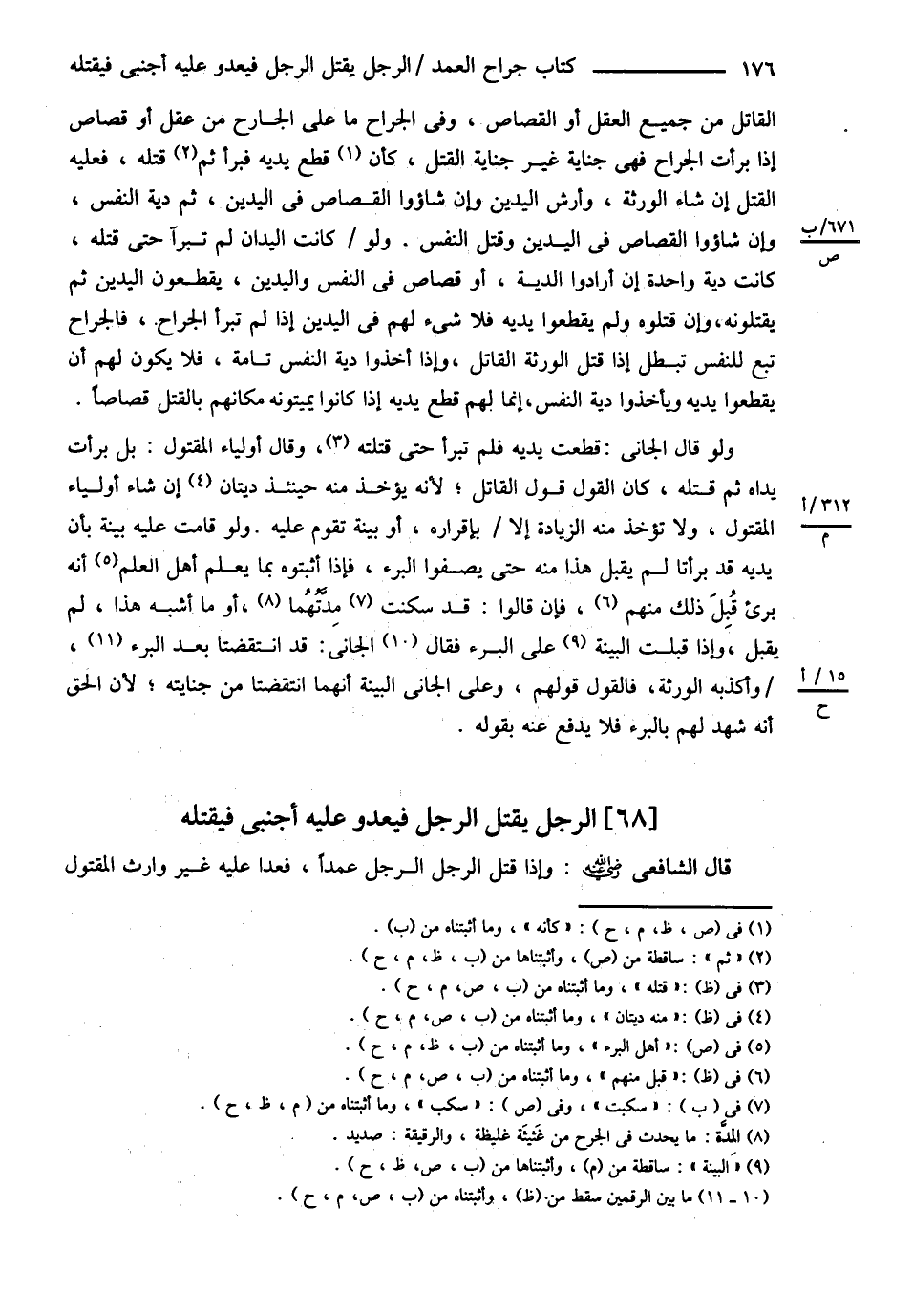الْقَاتِلِ مِنْ جَمِيعِ الْعَقْلِ أَوْ الْقِصَاصِ وَفِي الْجِرَاحِ مَا عَلَى الْجَارِحِ مِنْ عَقْلٍ أَوْ قِصَاصٍ إذَا بَرَأَتْ الْجِرَاحُ فَهِيَ جِنَايَةٌ غَيْرُ جِنَايَةِ الْقَتْلِ كَأَنْ قَطَعَ يَدَيْهِ فَبَرَأَ ثُمَّ قَتَلَهُ فَعَلَيْهِ الْقَتْلُ إنْ شَاءَ الْوَرَثَةُ وَأَرْشُ الْيَدَيْنِ وَإِنْ شَاءُوا الْقِصَاصَ فِي الْيَدَيْنِ , ثُمَّ دِيَةُ النَّفْسِ وَإِنْ شَاءُوا الْقِصَاصَ فِي الْيَدَيْنِ وَقَتْلِ النَّفْسِ وَلَوْ كَانَتْ الْيَدَانِ لَمْ تَبْرَآ حَتَّى قَتَلَهُ كَانَتْ دِيَةً وَاحِدَةً إنْ أَرَادُوا الدِّيَةَ أَوْ قِصَاصٌ فِي النَّفْسِ وَالْيَدَيْنِ يَقْطَعُونَ الْيَدَيْنِ , ثُمَّ يَقْتُلُونَهُ وَإِنْ قَتَلُوهُ وَلَمْ يَقْطَعُوا يَدَيْهِ فَلاَ شَيْءَ لَهُمْ فِي الْيَدَيْنِ إذَا لَمْ تَبْرَأْ الْجِرَاحُ فَالْجِرَاحُ تَبَعٌ لِلنَّفْسِ تَبْطُلُ إذَا قَتَلَ الْوَرَثَةُ الْقَاتِلَ وَإِذَا أَخَذُوا دِيَةَ النَّفْسِ تَامَّةً وَلاَ يَكُونُ لَهُمْ أَنْ يَقْطَعُوا يَدَيْهِ وَيَأْخُذُوا دِيَةَ النَّفْسِ إنَّمَا لَهُمْ قَطْعُ يَدَيْهِ إذَا كَانُوا يُمِيتُونَهُ مَكَانَهُمْ بِالْقَتْلِ قِصَاصًا وَلَوْ قَالَ الْجَانِي : قَطَعْت يَدَيْهِ فَلَمْ تَبْرَأْ حَتَّى قَتَلْته وَقَالَ أَوْلِيَاءُ الْمَقْتُولِ : بَلْ بَرَأَتْ يَدَاهُ , ثُمَّ قَتَلَهُ كَانَ الْقَوْلُ قَوْلَ الْقَاتِلِ ; لِأَنَّهُ يُؤْخَذُ مِنْهُ حِينَئِذٍ دِيَتَانِ إنْ شَاءَ أَوْلِيَاءُ الْمَقْتُولِ وَلاَ تُؤْخَذُ مِنْهُ الزِّيَادَةُ إلَّا بِإِقْرَارِهِ أَوْ بَيِّنَةٌ تَقُومُ عَلَيْهِ وَلَوْ قَامَتْ عَلَيْهِ بَيِّنَةٌ بِأَنَّ يَدَيْهِ قَدْ بَرَأَتَا لَمْ يُقْبَلْ هَذَا مِنْهُ حَتَّى يَصِفُوا الْبُرْءَ فَإِذَا أَثْبَتُوهُ بِمَا يَعْلَمُ أَهْلُ الْعِلْمِ أَنَّهُ بُرْءٌ قُبِلَ ذَلِكَ مِنْهُمْ فَإِنْ قَالُوا : قَدْ سَكَبَتْ مُدَّتُهُمَا أَوْ مَا أَشْبَهَ هَذَا لَمْ يُقْبَلْ وَإِذَا قُبِلَتْ الْبَيِّنَةُ عَلَى الْبُرْءِ فَقَالَ الْجَانِي قَدْ انْتَقَضَتَا بَعْدَ الْبُرْءِ وَأَكْذَبَهُ الْوَرَثَةُ فَالْقَوْلُ قَوْلُهُمْ وَعَلَى الْجَانِي الْبَيِّنَةُ أَنَّهُمَا انْتَقَضَتَا مِنْ جِنَايَتِهِ ; لِأَنَّ الْحَقَّ أَنَّهُ شَهِدَ لَهُمْ بِالْبُرْءِ فَلاَ يُدْفَعُ عَنْهُ بِقَوْلِهِ . .