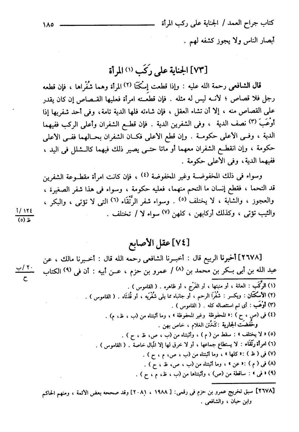 عَقْلُ الْأَصَابِعِ أَخْبَرَنَا الرَّبِيعُ قَالَ أَخْبَرَنَا الشَّافِعِيُّ رحمه الله تعالى قَالَ أَخْبَرَنَا مَالِكٌ عَنْ عَبْدِ اللَّهِ بْنِ أَبِي بَكْرِ بْنِ مُحَمَّدِ بْنِ عَمْرِو بْنِ حَزْم عَنْ أَبِيهِ أَنَّ : ? فِي الْكِتَابِ@