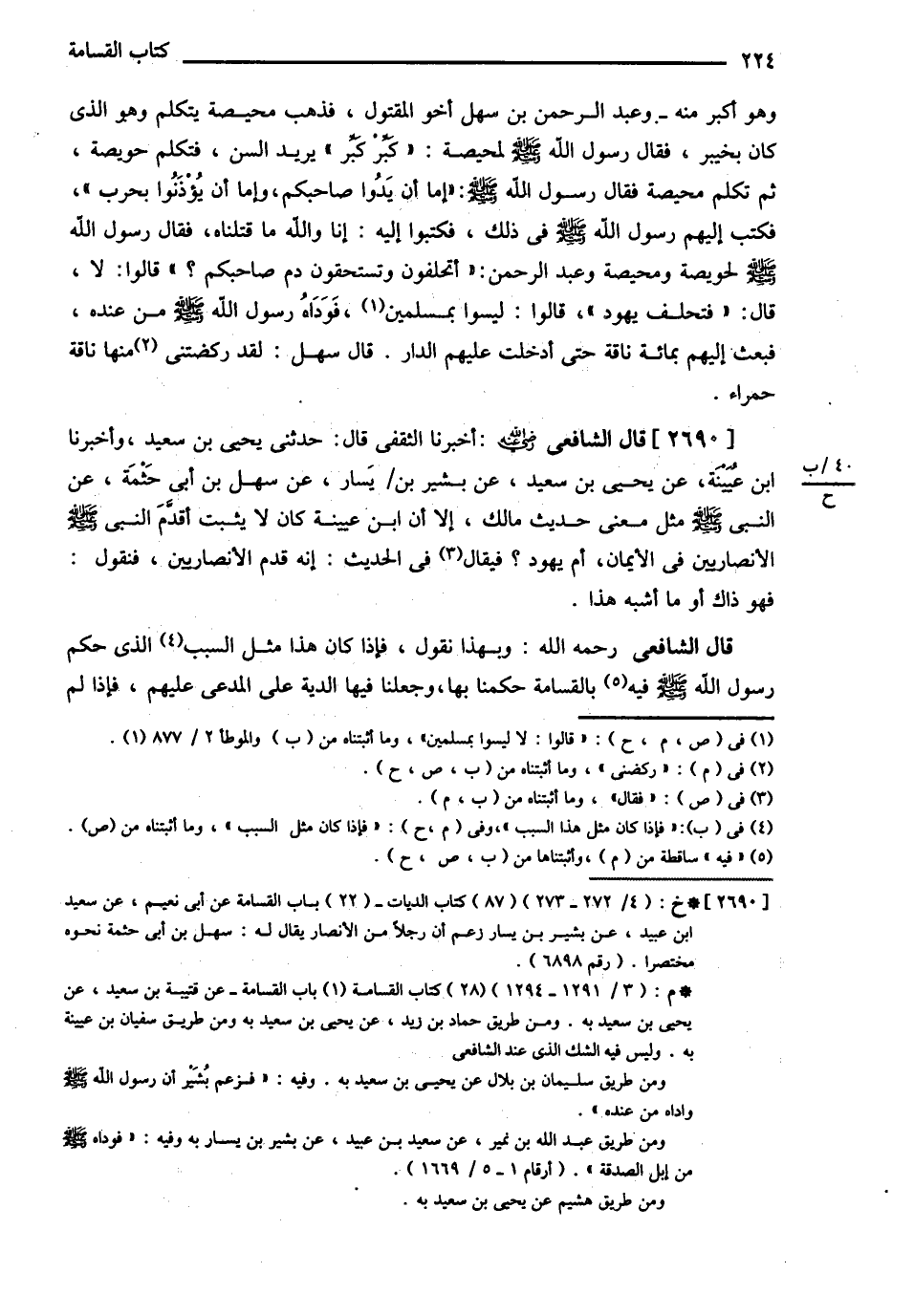 قَالَ الشَّافِعِيُّ : وَبِهَذَا نَقُولُ فَإِذَا كَانَ مِثْلُ هَذَا السَّبَبِ الَّذِي حَكَمَ رَسُولُ اللَّهِ - صلى الله عليه وسلم - فِيهِ بِالْقَسَامَةِ حَكَمْنَا بِهَا وَجَعَلْنَا فِيهَا الدِّيَةَ عَلَى الْمُدَّعَى عَلَيْهِمْ فَإِذَا لَمْ@