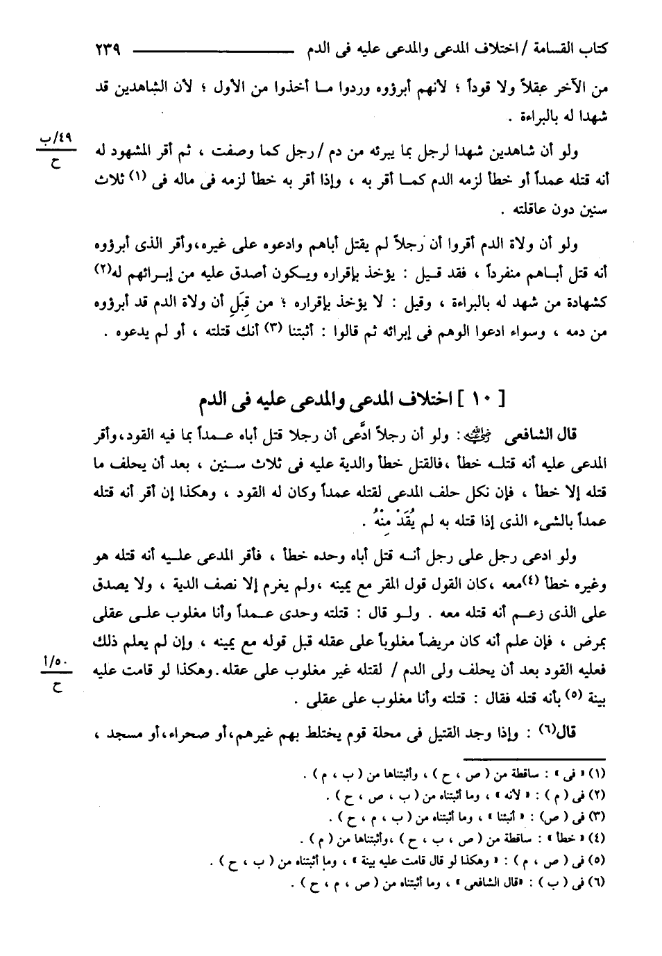 قَالَ الشَّافِعِيُّ : وَلَوْ أَنَّ رَجُلاً ادَّعَى أَنَّ رَجُلاً قَتَلَ أَبَاهُ عَمْدًا بِمَا فِيهِ الْقَوَدُ وَأَقَرَّ الْمُدَّعَى عَلَيْهِ أَنَّهُ قَتَلَهُ خَطَأً فَالْقَتْلُ خَطَأٌ وَالدِّيَةُ عَلَيْهِ فِي ثَلاَثِ سِنِينَ بَعْدَ أَنْ يَحْلِفَ مَا قَتَلَهُ إلَّا خَطَأً فَإِنْ نَكَلَ حَلَفَ الْمُدَّعِي لِقَتْلِهِ عَمْدًا وَكَانَ لَهُ الْقَوَدُ وَهَكَذَا إنْ أَقَرَّ أَنَّهُ قَتَلَهُ عَمْدًا بِالشَّيْءِ الَّذِي إذَا قَتَلَهُ بِهِ لَمْ يُقَدْ مِنْهُ وَلَوْ ادَّعَى رَجُلٌ عَلَى رَجُلٍ أَنَّهُ قَتَلَ أَبَاهُ وَحْدَهُ خَطَأً فَأَقَرَّ الْمُدَّعَى عَلَيْهِ أَنَّهُ قَتَلَهُ هُوَ وَغَيْرُهُ مَعَهُ كَانَ الْقَوْلُ قَوْلَ الْمُقِرِّ مَعَ يَمِينِهِ وَلَمْ يَغْرَمْ إلَّا نِصْفَ الدِّيَةِ وَلاَ يَصْدُقُ عَلَى الَّذِي زَعَمَ أَنَّهُ قَتَلَهُ مَعَهُ . وَلَوْ قَالَ قَتَلْته وَحْدِي عَمْدًا وَأَنَا مَغْلُوبٌ عَلَى عَقْلِي بِمَرَضٍ فَإِنْ عُلِمَ أَنَّهُ كَانَ مَرِيضًا مَغْلُوبًا عَلَى عَقْلِهِ قُبِلَ قَوْلُهُ مَعَ يَمِينِهِ وَإِنْ لَمْ يُعْلَمْ ذَلِكَ فَعَلَيْهِ الْقَوَدُ بَعْدَ أَنْ يَحْلِفَ وَلِيُّ الدَّمِ لَقَتَلَهُ غَيْرُ مَغْلُوبٍ عَلَى عَقْلِهِ وَهَكَذَا لَوْ قَامَتْ عَلَيْهِ بَيِّنَةٌ بِأَنَّهُ قَتَلَهُ فَقَالَ : قَتَلْته وَأَنَا مَغْلُوبٌ عَلَى عَقْلِي
