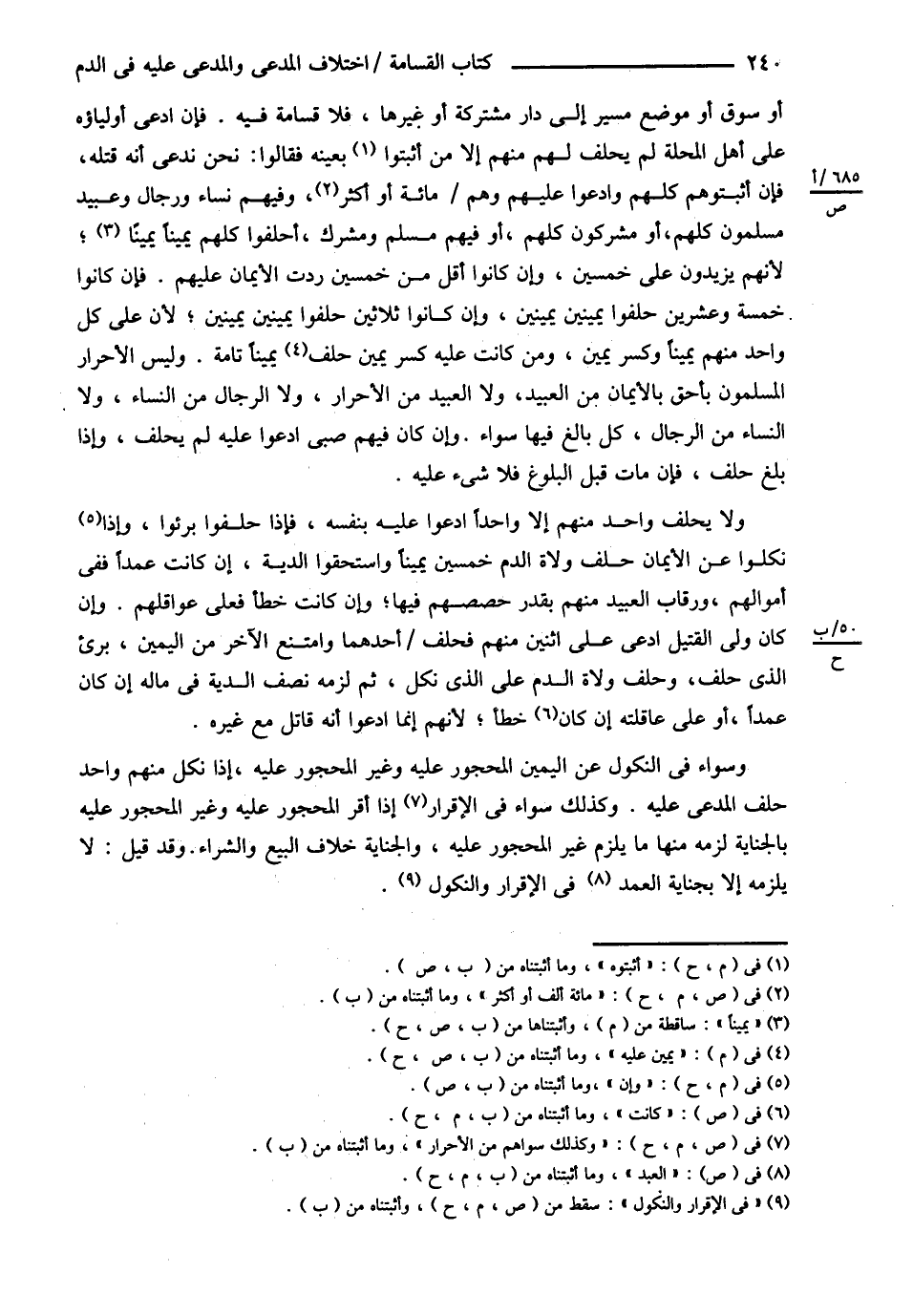 أَوْ سُوقٍ أَوْ مَوْضِعِ مَسِيرٍ إلَى دَارٍ مُشْتَرَكَةٍ أَوْ غَيْرِهَا فَلاَ قَسَامَةَ فِيهِ فَإِنْ ادَّعَى أَوْلِيَاؤُهُ عَلَى أَهْلِ الْمَحَلَّةِ لَمْ يَحْلِفْ لَهُمْ مِنْهُمْ إلَّا مَنْ أَثْبَتُوا بِعَيْنِهِ فَقَالُوا نَحْنُ نَدَّعِي أَنَّهُ قَتَلَهُ فَإِنْ أَثْبَتُوهُمْ كُلَّهُمْ وَادَّعَوْا عَلَيْهِمْ وَهُمْ مِائَةٌ أَوْ أَكْثَرُ وَفِيهِمْ نِسَاءٌ وَرِجَالٌ وَعَبِيدٌ مُسْلِمُونَ كُلُّهُمْ أَوْ مُشْرِكُونَ كُلُّهُمْ أَوْ فِيهِمْ مُسْلِمٌ وَمُشْرِكٌ أُحْلِفُوا كُلُّهُمْ يَمِينًا يَمِينًا ; لِأَنَّهُمْ يَزِيدُونَ عَلَى خَمْسِينَ وَإِنْ كَانُوا أَقَلَّ مِنْ خَمْسِينَ رُدَّتْ الْأَيْمَانُ عَلَيْهِمْ فَإِنْ كَانُوا خَمْسَةً وَعِشْرِينَ حَلَفُوا يَمِينَيْنِ يَمِينَيْنِ وَإِنْ كَانُوا ثَلاَثِينَ حَلَفُوا يَمِينَيْنِ يَمِينَيْنِ ; لِأَنَّ عَلَى كُلِّ وَاحِدٍ مِنْهُمْ يَمِينًا وَكَسْرَ يَمِينٍ وَمَنْ كَانَتْ عَلَيْهِ كَسْرُ يَمِينٍ حَلَفَ يَمِينًا تَامَّةً وَلَيْسَ الْأَحْرَارُ الْمُسْلِمُونَ بِأَحَقَّ بِالْأَيْمَانِ مِنْ الْعَبِيدِ وَلاَ الْعَبِيدُ مِنْ الْأَحْرَارِ وَلاَ الرِّجَالُ مِنْ النِّسَاءِ وَلاَ النِّسَاءُ مِنْ الرِّجَالِ كُلُّ بَالِغٍ فِيهَا سَوَاءٌ . وَإِنْ كَانَ فِيهِمْ صَبِيٌّ ادَّعَوْا عَلَيْهِ لَمْ يَحْلِفْ وَإِذَا بَلَغَ حَلَفَ فَإِنْ مَاتَ قَبْلَ الْبُلُوغِ فَلاَ شَيْءَ عَلَيْهِ وَلاَ يَحْلِفُ وَاحِدٌ مِنْهُمْ إلَّا وَاحِدًا ادَّعَوْا عَلَيْهِ بِنَفْسِهِ فَإِذَا حَلَفُوا بَرِئُوا وَإِذَا نَكَلُوا عَنْ الْأَيْمَانِ حَلَفَ وُلاَةُ الدَّمِ خَمْسِينَ يَمِينًا وَاسْتَحَقُّوا الدِّيَةَ إنْ كَانَتْ عَمْدًا فَفِي أَمْوَالِهِمْ وَرِقَابِ الْعَبِيدِ مِنْهُمْ بِقَدْرِ حِصَصِهِمْ فِيهَا وَإِنْ كَانَتْ خَطَأً فَعَلَى عَوَاقِلِهِمْ وَإِنْ كَانَ وَلِيُّ الْقَتِيلِ ادَّعَى عَلَى اثْنَيْنِ مِنْهُمْ فَحَلَفَ أَحَدُهُمَا وَامْتَنَعَ الْآخَرُ مِنْ الْيَمِينِ بَرِيءَ الَّذِي حَلَفَ وَحَلَفَ وُلاَةُ الدَّمِ عَلَى الَّذِي نَكَلَ , ثُمَّ لَزِمَهُ نِصْفُ الدِّيَةِ فِي مَالِهِ إنْ كَانَ عَمْدًا وَعَلَى عَاقِلَتِهِ إنْ كَانَ خَطَأً ; لِأَنَّهُمْ إنَّمَا ادَّعَوْا أَنَّهُ قَاتِلٌ مَعَ غَيْرِهِ وَسَوَاءٌ فِي النُّكُولِ عَنْ الْيَمِينِ الْمَحْجُورُ عَلَيْهِ وَغَيْرُ الْمَحْجُورِ عَلَيْهِ إذَا نَكَلَ مِنْهُمْ وَاحِدٌ حَلَفَ الْمُدَّعَى عَلَيْهِ . وَكَذَلِكَ سَوَاءٌ فِي الْإِقْرَارِ إذَا أَقَرَّ الْمَحْجُورُ عَلَيْهِ وَغَيْرُ الْمَحْجُورِ عَلَيْهِ بِالْجِنَايَةِ لَزِمَهُ مِنْهَا مَا يَلْزَمُ غَيْرَ الْمَحْجُورِ عَلَيْهِ وَالْجِنَايَةُ خِلاَفُ الْبَيْعِ وَالشِّرَاءِ وَقَدْ قِيلَ : لاَ يَلْزَمُهُ إلَّا بِجِنَايَةِ الْعَمْدِ فِي الْإِقْرَارِ وَالنُّكُولِ .@