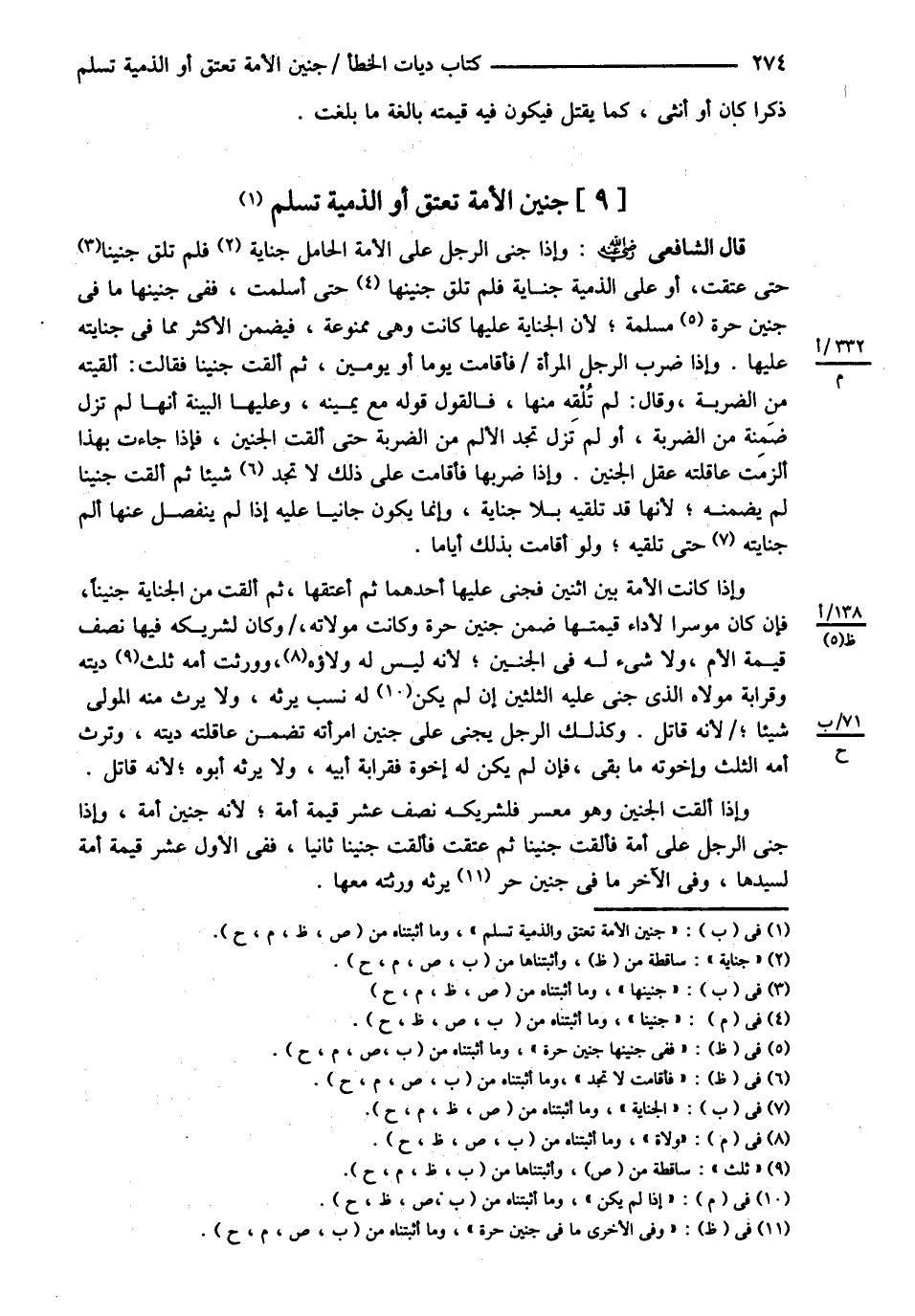 وَإِذَا جَنَى الرَّجُلُ عَلَى أَمَةٍ فَأَلْقَتْ جَنِينًا ثُمَّ عَتَقَتْ فَأَلْقَتْ جَنِينًا ثَانِيًا فَفِي الْأَوَّلِ عُشْرُ قِيمَةِ أَمَةٍ لِسَيِّدِهَا وَفِي الْآخَرِ مَا فِي جَنِينِ حُرٍّ يَرِثُهُ وَرَثَتُهُ مَعَهَا @