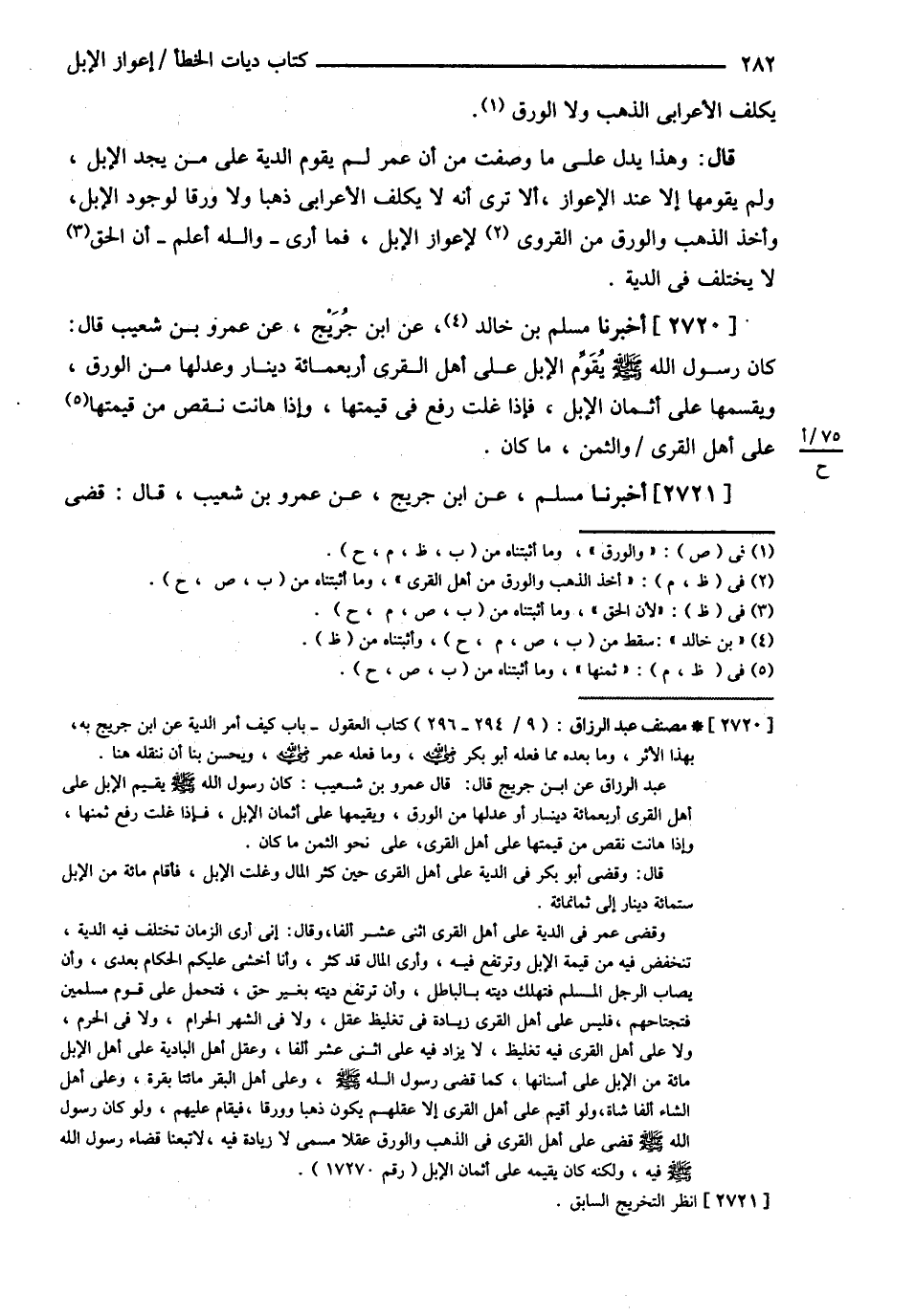 يُكَلَّفُ الْأَعْرَابِيُّ الذَّهَبَ وَلاَ الْوَرِقَ . ( قَالَ ) وَهَذَا يَدُلُّ عَلَى مَا وَصَفْتُ مِنْ أَنَّ عُمَرَ لَمْ يُقَوِّمْ الدِّيَةَ عَلَى مَنْ يَجِدُ الْإِبِلَ وَلَمْ يُقَوِّمْهَا إلَّا عِنْدَ الْإِعْوَازِ , أَلاَ تَرَى أَنَّهُ لاَ يُكَلَّفُ الْأَعْرَابِيَّ ذَهَبًا وَلاَ وَرِقًا لِوُجُودِ الْإِبِلِ وَأَخَذَ الذَّهَبَ وَالْوَرِقَ مِنْ الْقَرَوِيِّ لِإِعْوَازِ الْإِبِلِ فِيمَا أَرَى - وَاَللَّهُ أَعْلَمُ - أَنَّ الْحَقَّ لاَ يَخْتَلِفُ فِي الدِّيَةِ . أَخْبَرَنَا مُسْلِمٌ عَنْ ابْنِ جُرَيْجٍ عَنْ عَمْرِو بْنِ شُعَيْبٍ قَالَ : ? كَانَ رَسُولُ اللَّهِ - صلى الله عليه وسلم - يُقَوِّمُ الْإِبِلَ عَلَى أَهْلِ الْقُرَى أَرْبَعَمِائَةِ دِينَارٍ وَعَدْلَهَا مِنْ الْوَرِقِ وَيَقْسِمُهَا عَلَى أَثْمَانِ الْإِبِلِ فَإِذَا غَلَتْ رَفَعَ فِي قِيمَتِهَا وَإِذَا هَانَتْ نَقَصَ مِنْ قِيمَتِهَا عَلَى أَهْلِ الْقُرَى وَالثَّمَنُ مَا كَانَ ? . أَخْبَرَنَا مُسْلِمٌ عَنْ ابْنِ جُرَيْجٍ عَنْ عَمْرِو بْنِ شُعَيْبٍ قَالَ قَضَى@