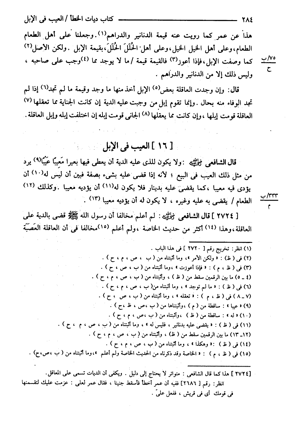 قَالَ الشَّافِعِيُّ : لَمْ أَعْلَمْ مُخَالِفًا أَنَّ رَسُولَ اللَّهِ - صلى الله عليه وسلم - قَضَى بِالدِّيَةِ عَلَى الْعَاقِلَةِ وَهَذَا أَكْثَرُ مِنْ حَدِيثِ الْخَاصَّةِ وَلَمْ أَعْلَمْ مُخَالِفًا فِي أَنَّ الْعَاقِلَةَ الْعَصَبَةُ@